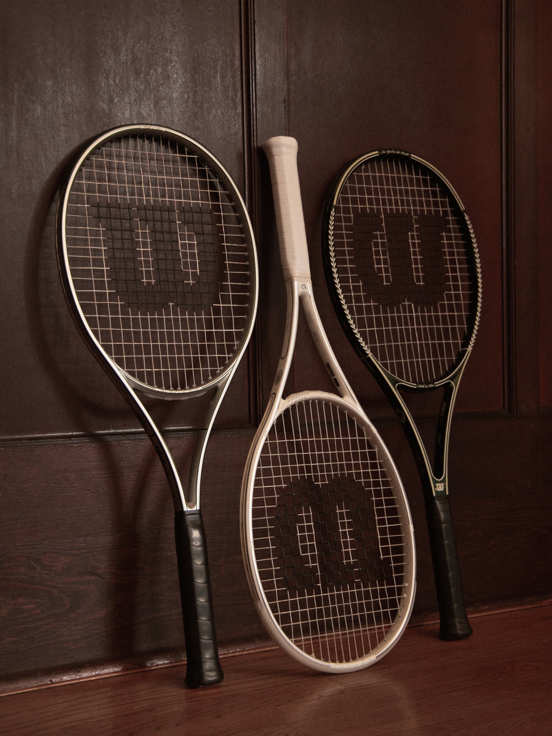Wilson’s professional-grade rackets—the Pro Staff 97 V14, Blade 98, and Shift 99 V1—are upgraded with this season’s co-branding and artwork. Complementary covers, tennis balls and range of premium bags complete the offering.