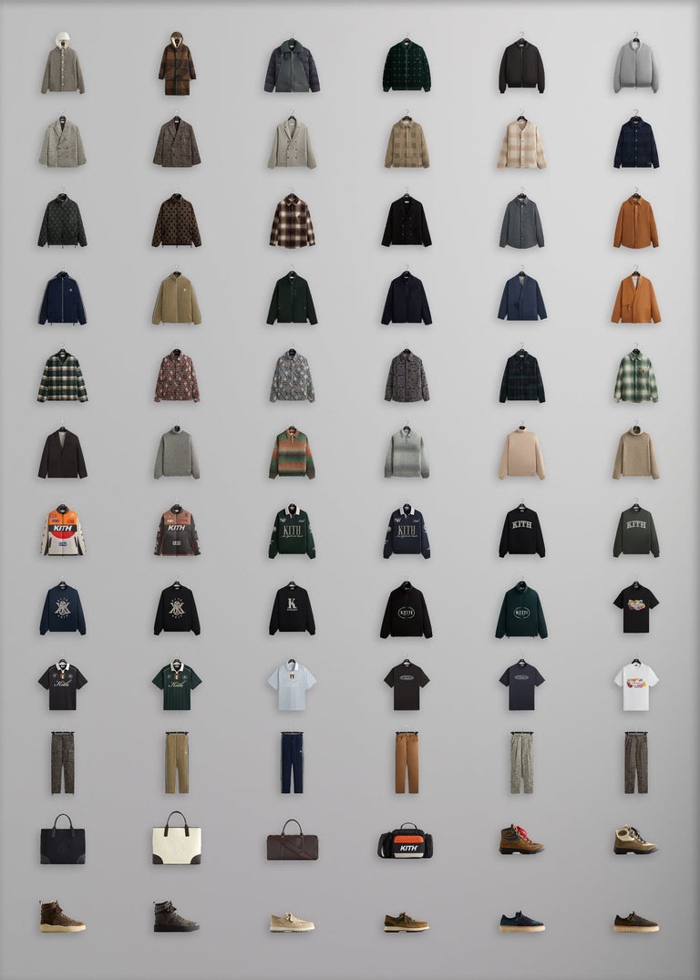 Winter 2024 debuts styles like the Lucian Jacket and Patchwork Becker Coat and sees the return of classic Kith silhouettes like the Bergen Car Coat, Jersey Midi Puffer and Brixton Puffed Shirt Jacket. Crafted from a range of elevated fabrics like velvet corduroy, shearling, bonded microsuede, and double-faced wool.