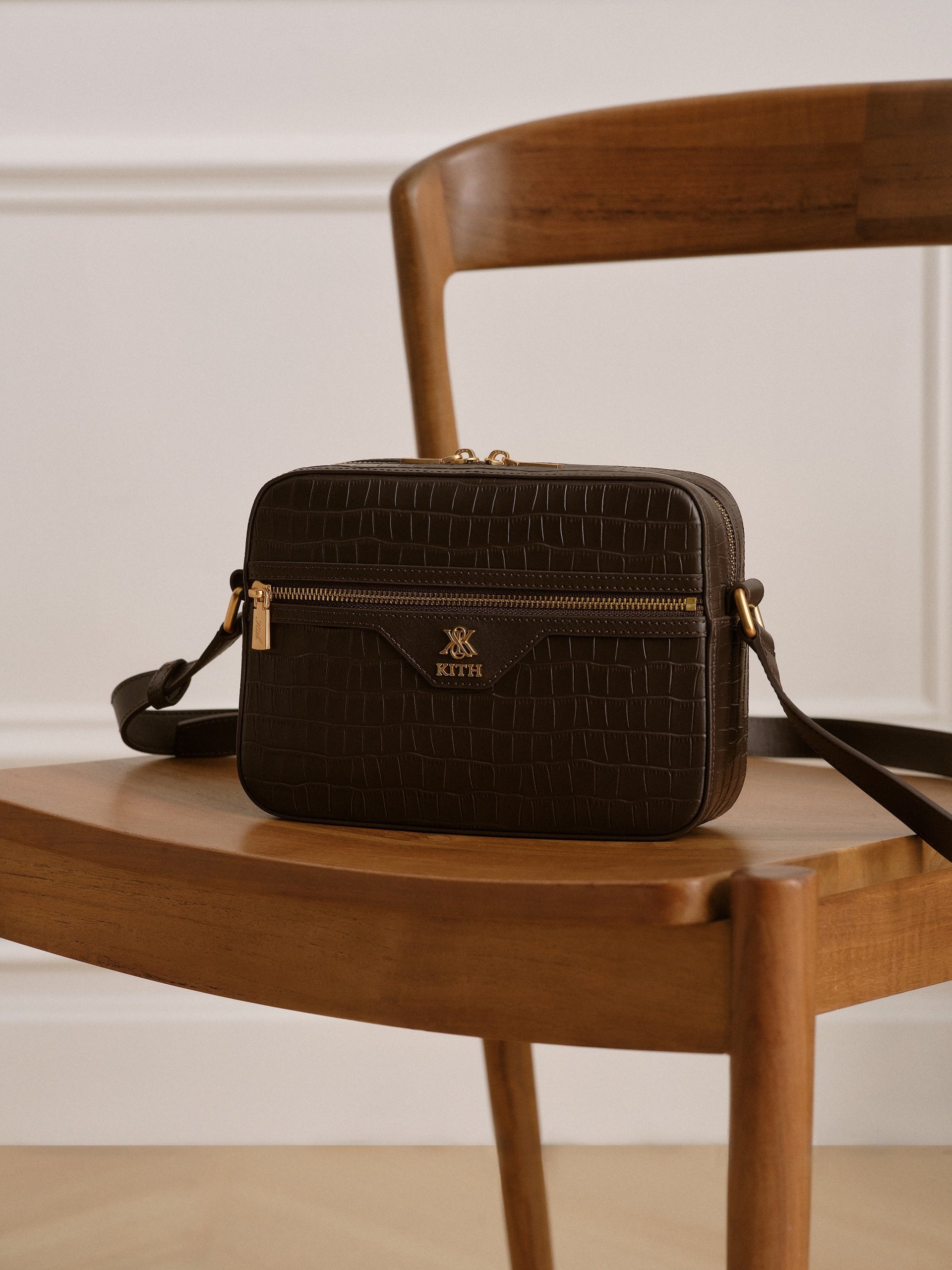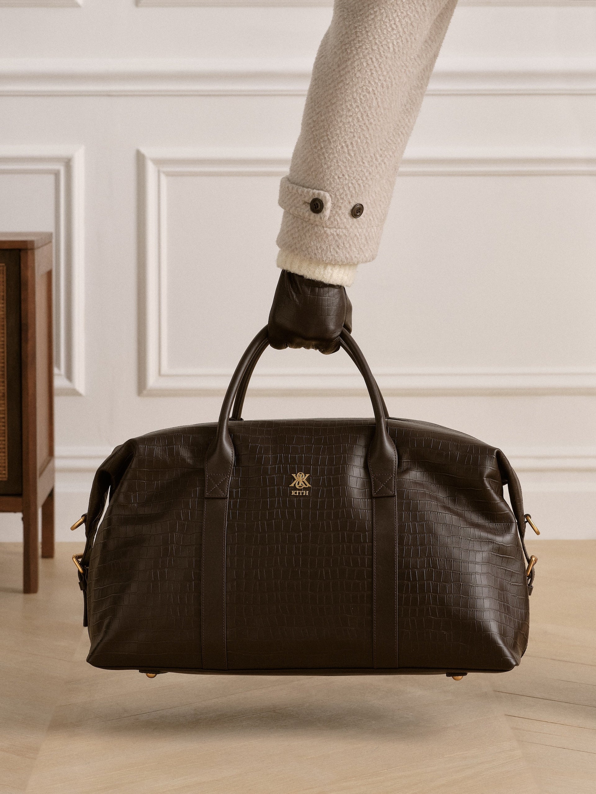 Kith expands its cold weather assortment with knit neckwarmers in staple hues, scarves, and premium gloves. Also included in this winter’s accessories are bags and small leather goods made of upscale materials designed to pair back to the apparel assortment, such as the the Duffle Bag, Traveler K40, Traveler K55, and Camera Crossbody in ponyhair, as well as python-printed, croc-embossed, and tumbled leather.