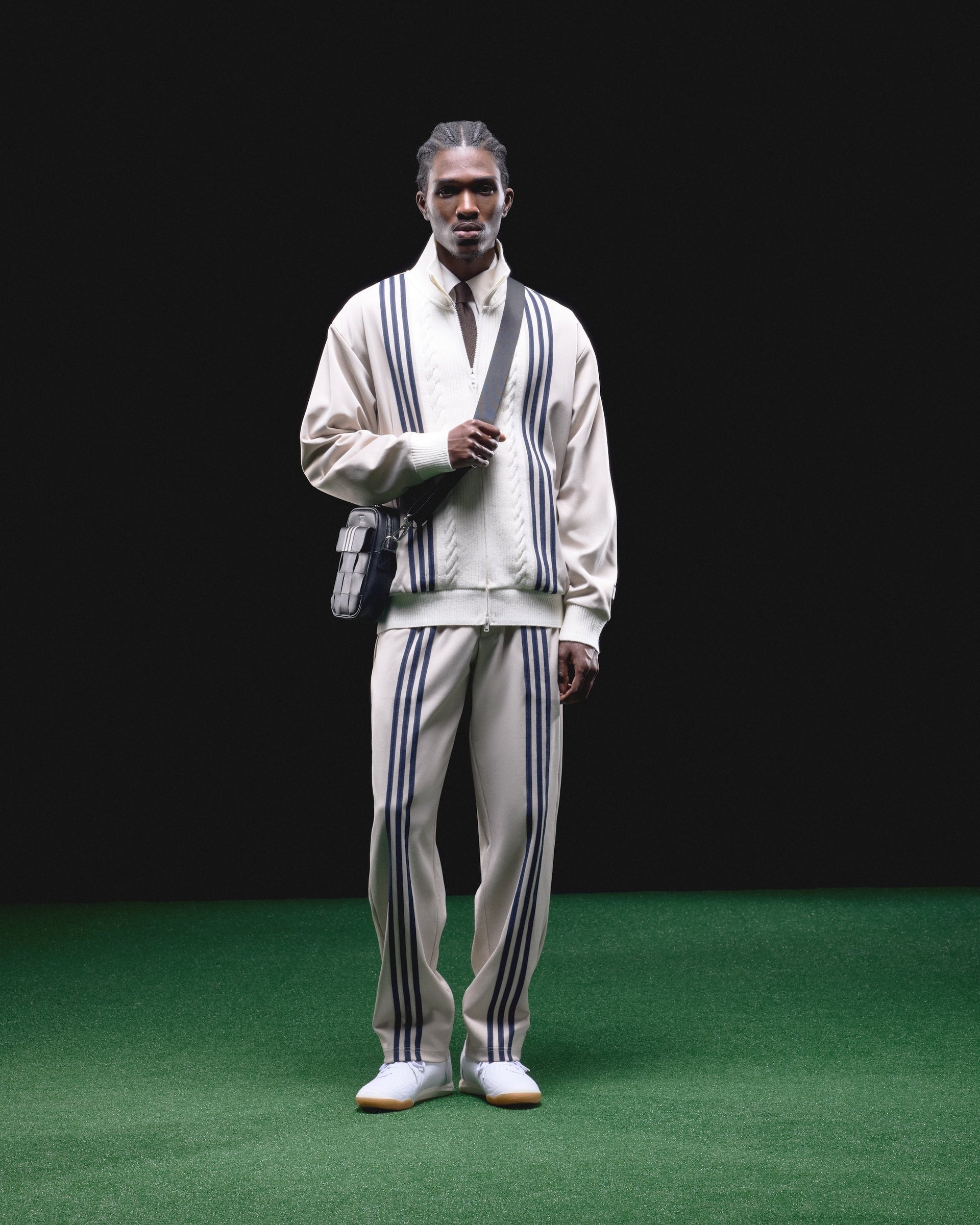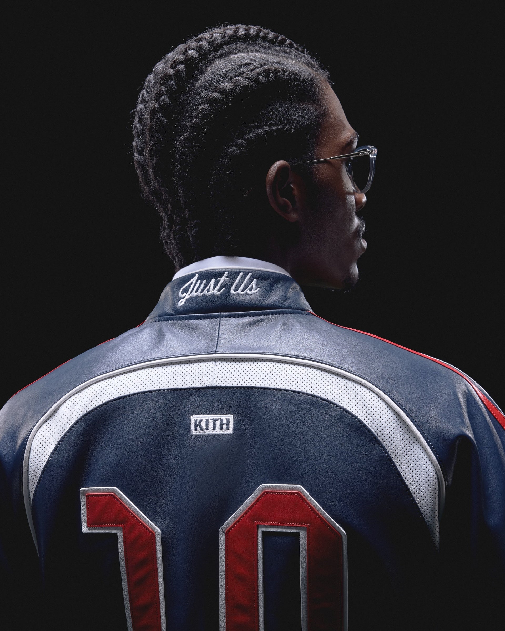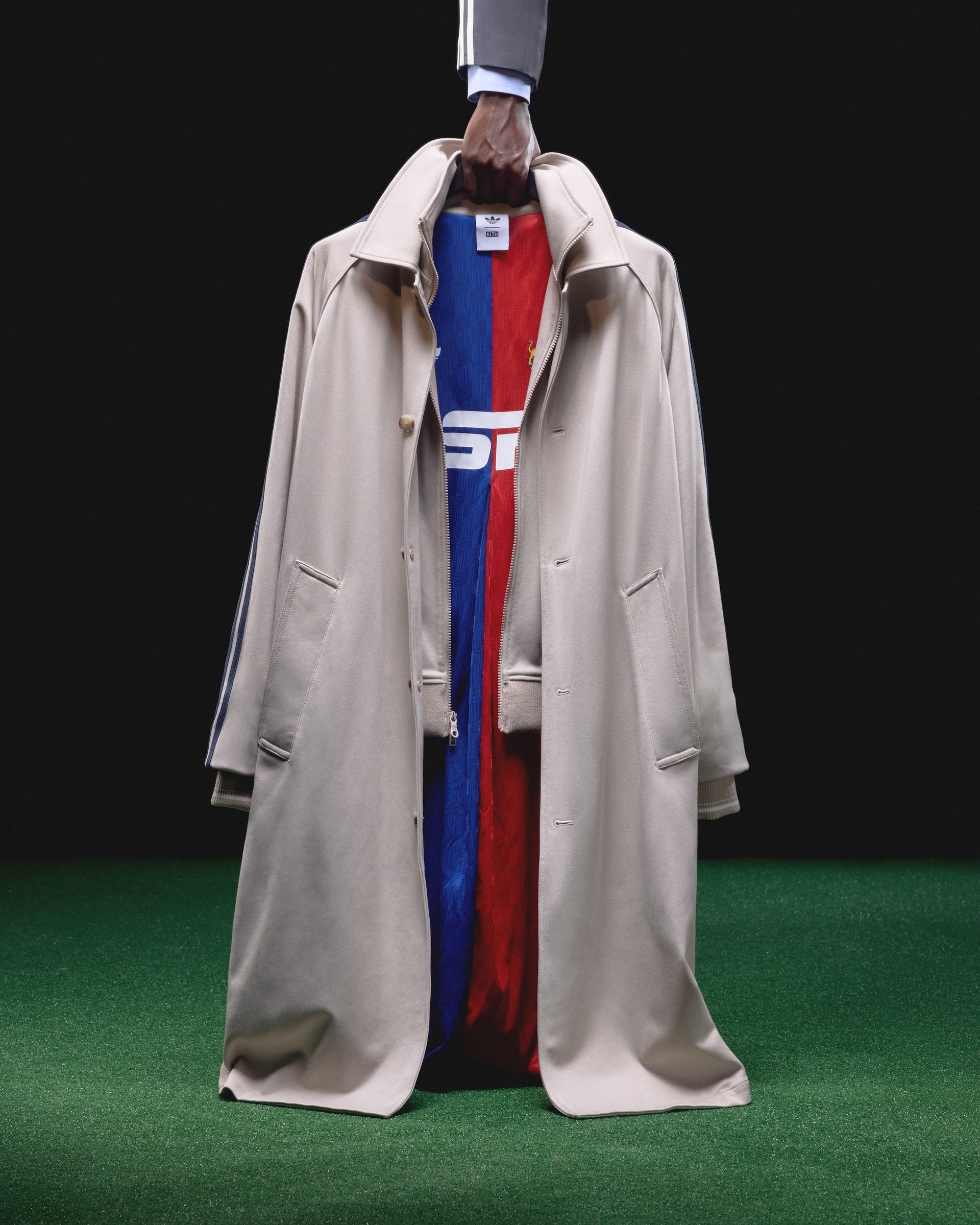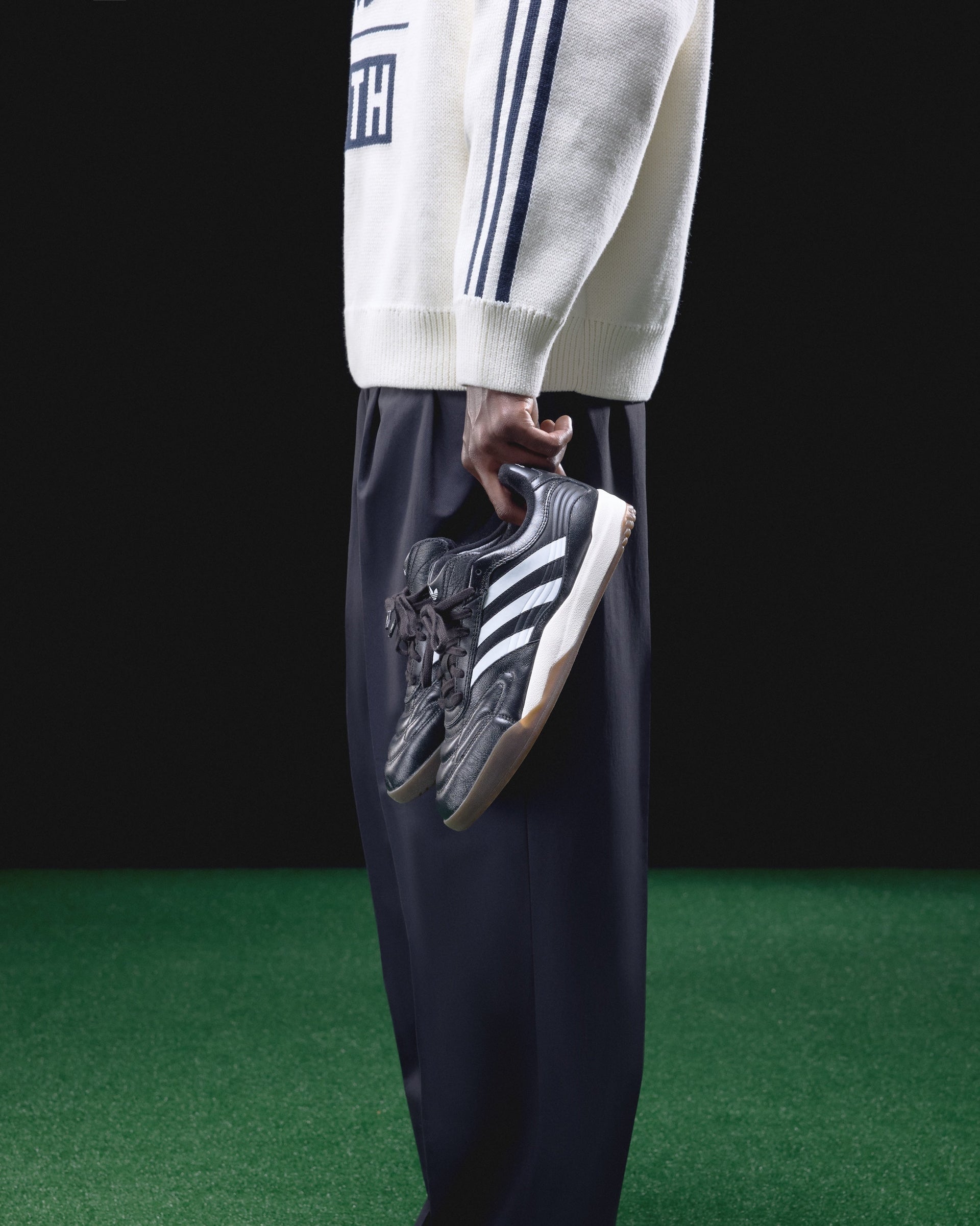 This collection comprises adidas & Kith signature silhouettes, highlighting debut co-branded logos and artwork. Explore elevated outerwear, jerseys, tracksuits, tees, and knitwear. Standouts include the Stadium Coat, Suit Jacket & Pant and Tracksuit. The Stadium Coat is an elevated yet relaxed silhouette crafted from premium leather. Details include signature adidas stripes along the back & hood as well as a built-in wraparound belt. The Suit Jacket & Pant, based on Kith’s Julius Blazer and Kylan Pant, epitomizes the intersection of luxury and football. Made from a premium wool-polyester blend, this suit features a double-breasted jacket and double-pleated trousers. The Kith for adidas Football Tracksuit is inspired by adidas’ iconic tracksuit. The duo came together to reimagine the style with a custom knit execution & piping details along the front. The set is offered in Beige & Green executions and is complete with a co-branded label.