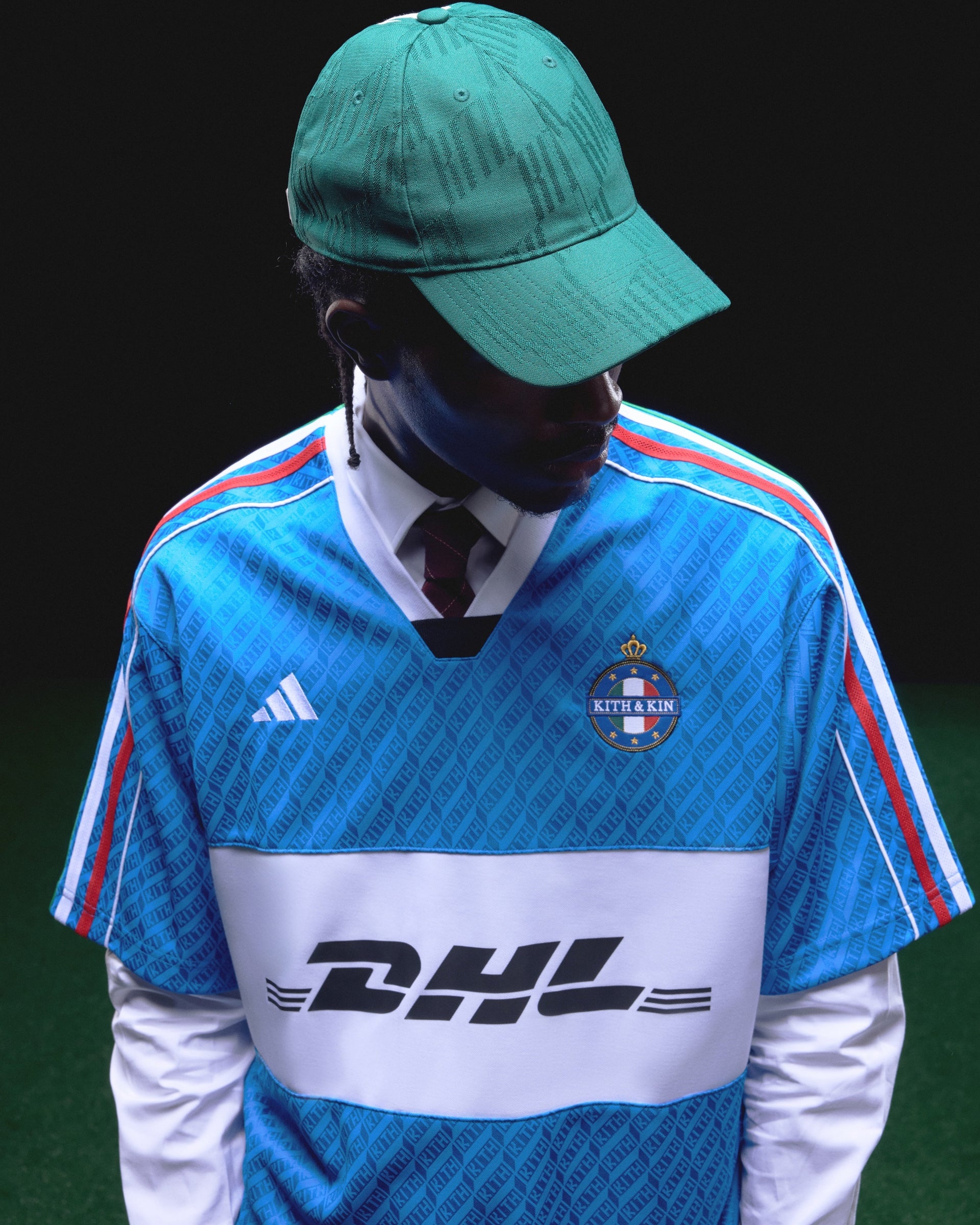 The duo also collaborated with long-time partner Chase and DHL Express on long and short-sleeve jerseys. Each style continues the italicized Kith Monogram artwork, yet features its own custom Kith logos specially designed for this collection.