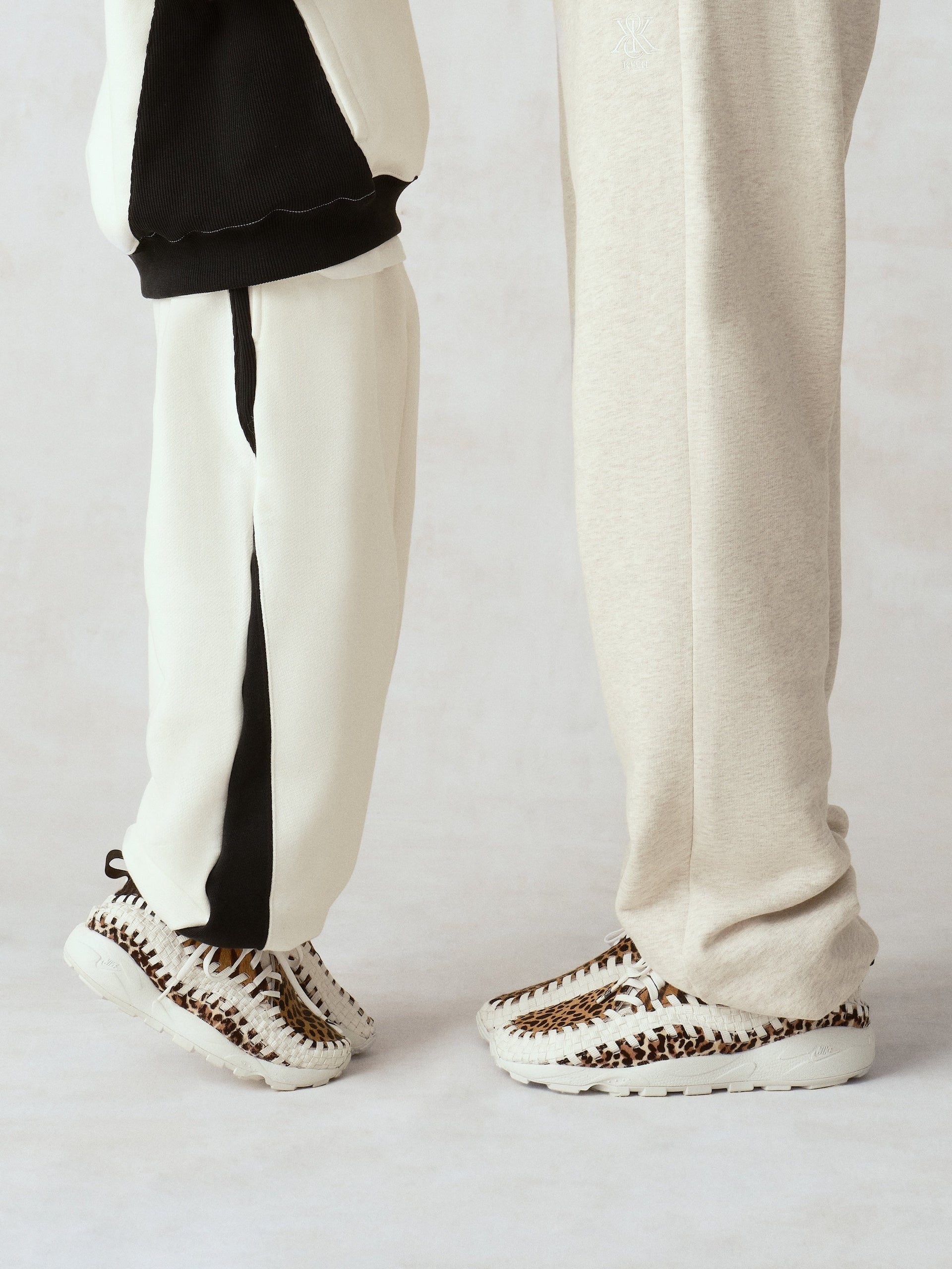 This collaboration begins with the Footscape in Grade School sizing–a silhouette never before done in the kids size scale—comprising zebra, snow leopard, and giraffe blocked ponyhair woven together with classic Footscape lacing detailing throughout. It is complete with co-branded Kith and Nike Swoosh branding on the tongue, and footbed.