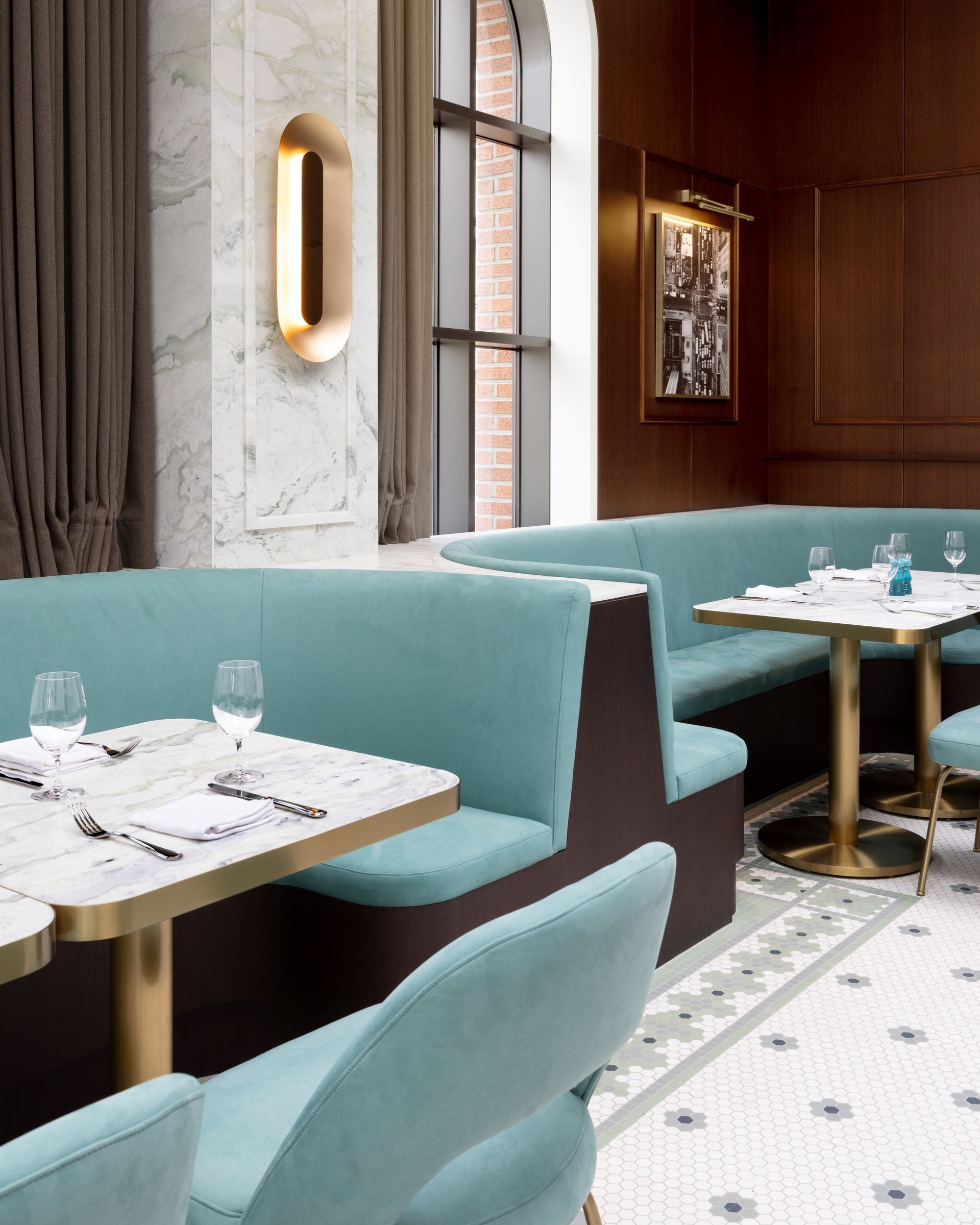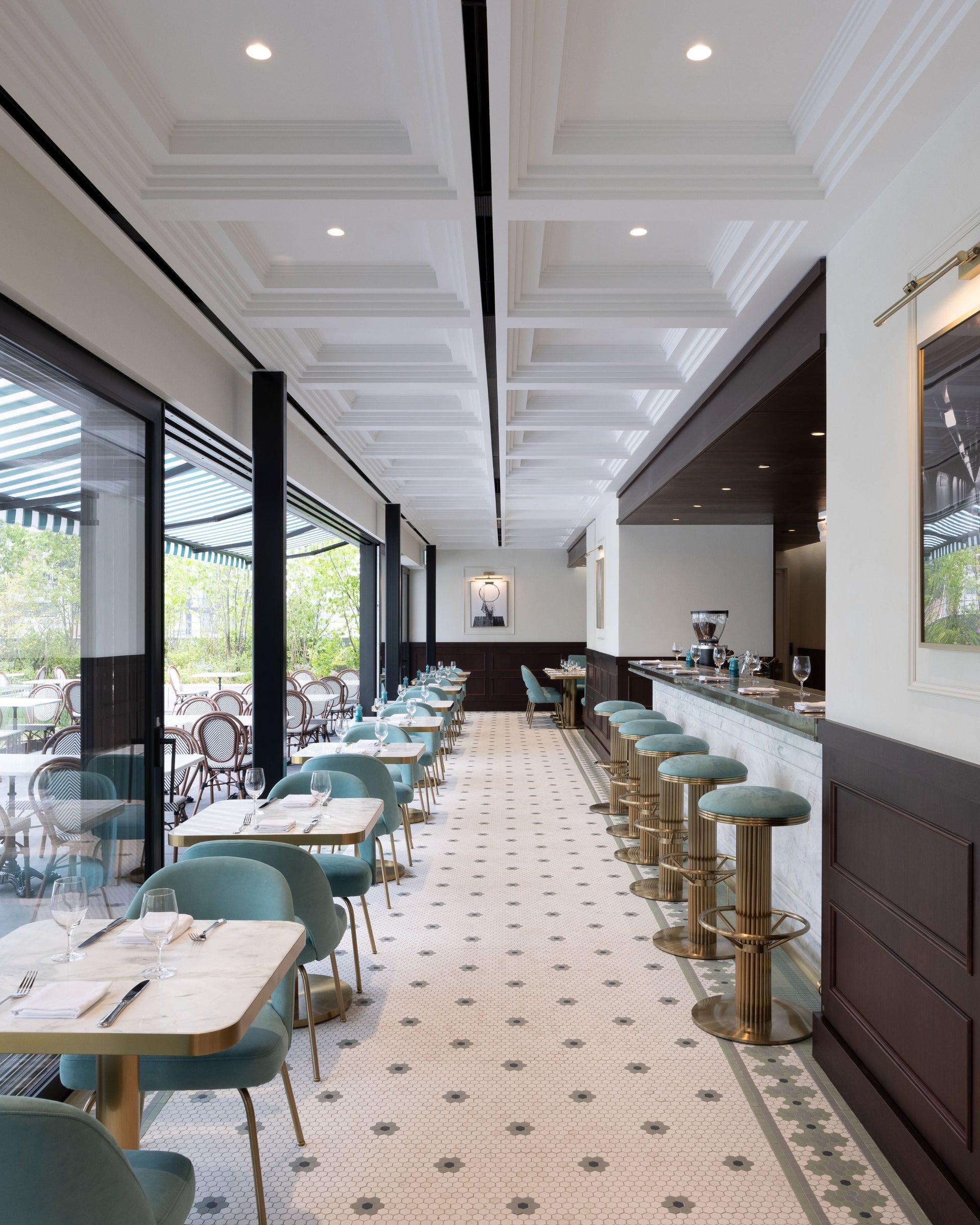 Open seven days a week, Sadelle’s at Kith Seoul features location-exclusive menu items as well as classic Sadelle’s fare, such as their beloved bagels, sliced-to-order salmon, chopped salads, and world-famous french toast. Diners of Sadelle’s Seoul are greeted by a marble header engraved with a custom Sadelle’s at Kith Seoul insignia, followed by an interior adorned with Kith Monogram suede wallpaper, Sadelle’s signature blue suede seating and dark walnut floors with brass accents. Sadelle’s at Kith Seoul takes over the entire third floor and extends into the fourth floor terrace—showcasing a beautiful view of Seoul filled with an array of lively greenery.