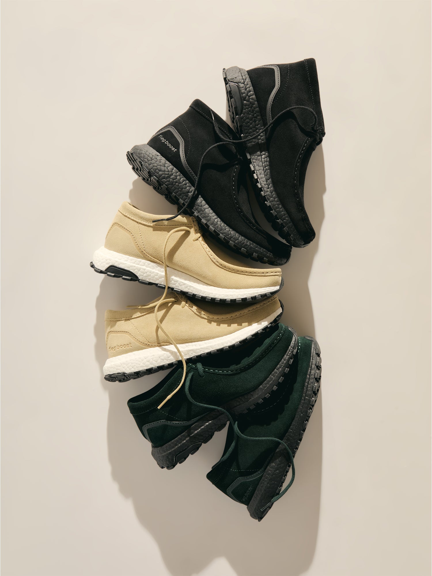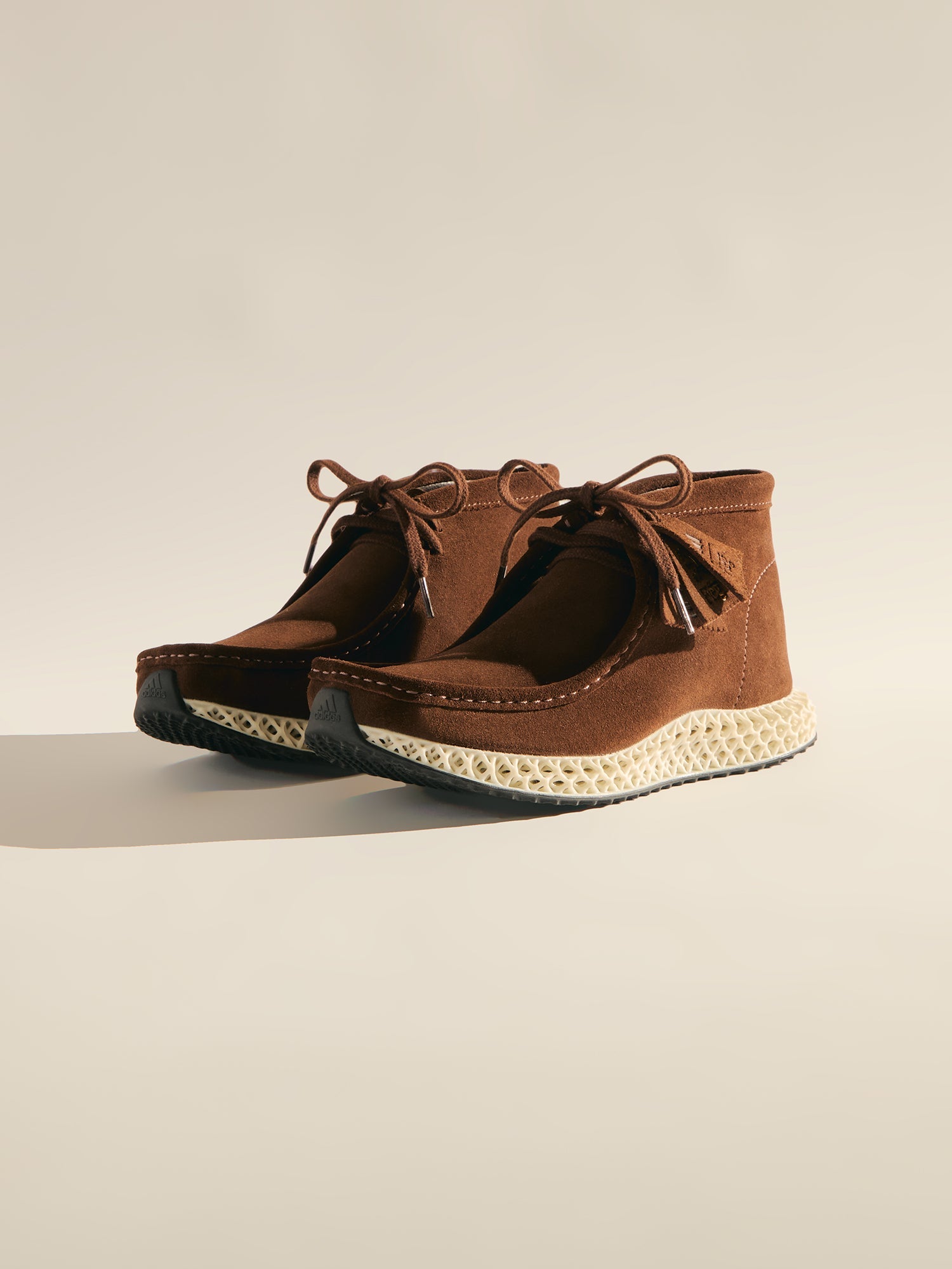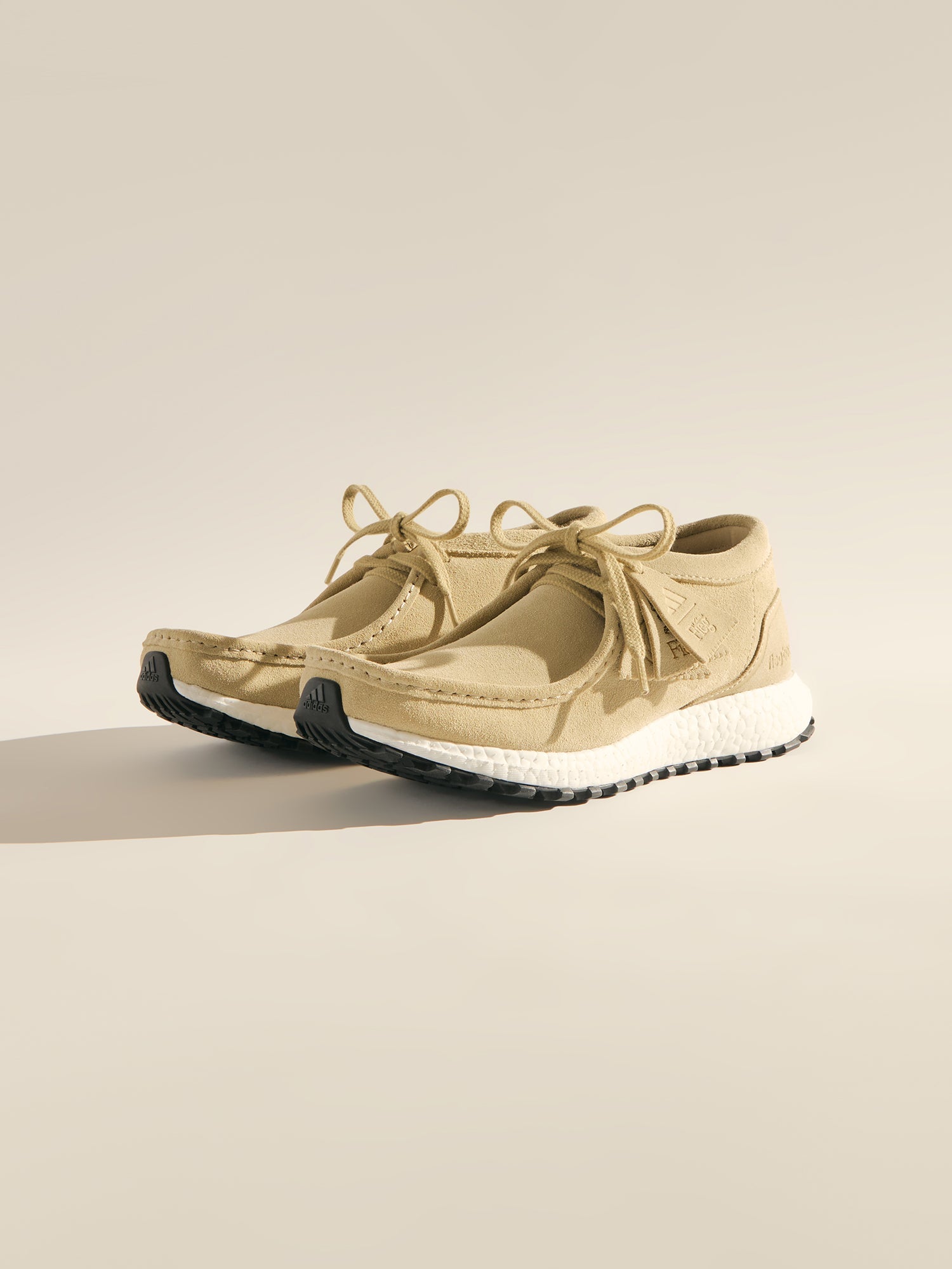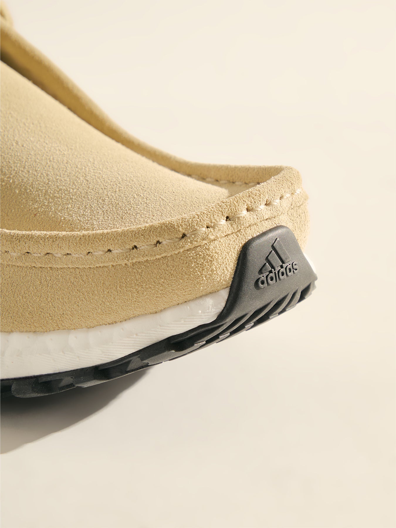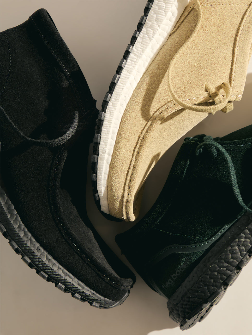 Previously having collaborated on the 8th St Samba, AS350, Gazelle, and BW Army—each of which featured an adidas upper silhouette on top of Clarks’ classic crepe outsole—Fieg alongside his 8th St partners wanted to push the boundaries of design and produce something never before-seen, taking the iconic Wallabee silhouette made of premium suede, featuring a moccasin-style toe, and pairing it with the optimized Ultraboost and 4D outsoles—the Ultraboost featuring a Stretchweb outsole for flexibility and Continental™ Rubber for traction, and the 4D known for its identifiable 3D-Printed midsole. Each is complete with optimized cushioning for long-lasting wear.