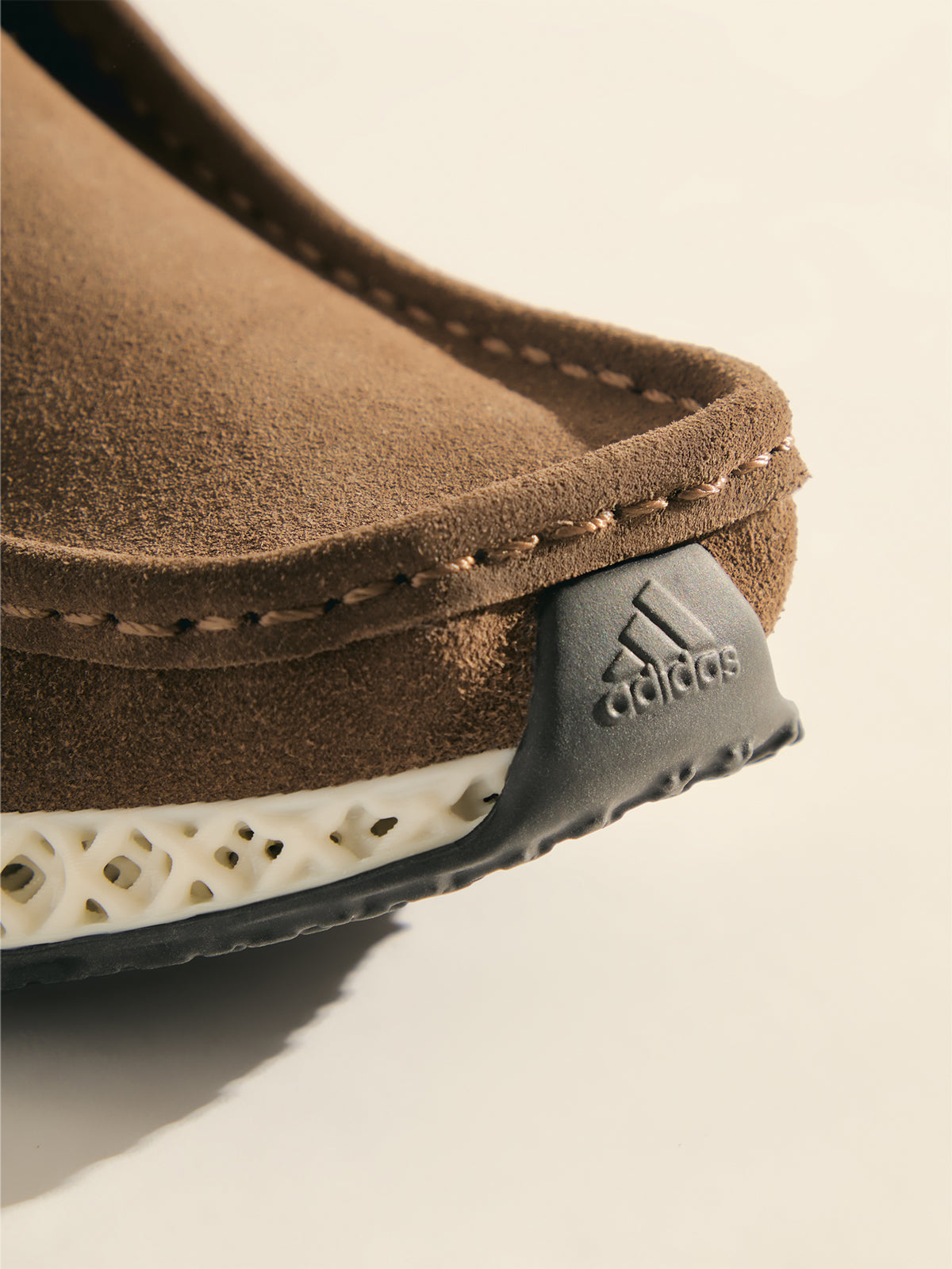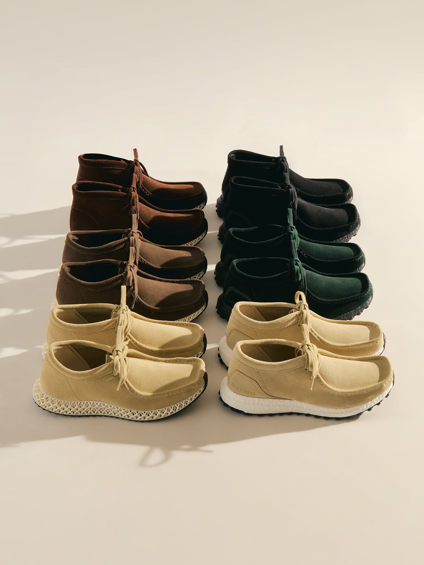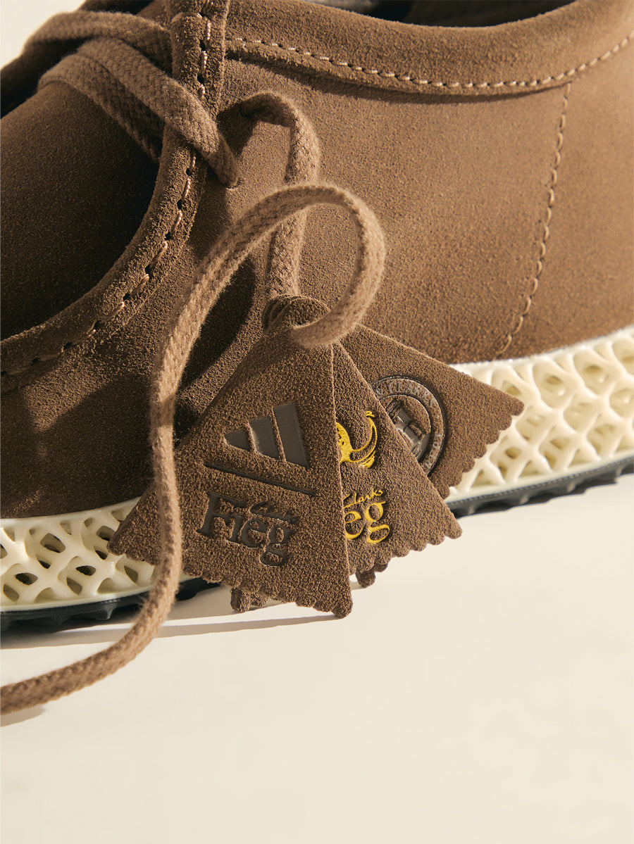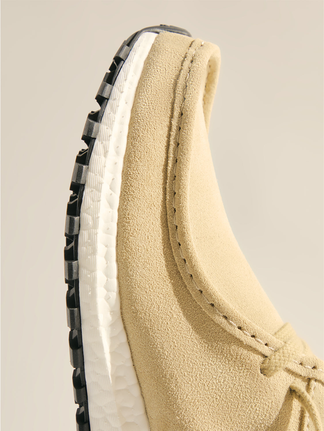 Previously having collaborated on the 8th St Samba, AS350, Gazelle, and BW Army—each of which featured an adidas upper silhouette on top of Clarks’ classic crepe outsole—Fieg alongside his 8th St partners wanted to push the boundaries of design and produce something never before-seen, taking the iconic Wallabee silhouette made of premium suede, featuring a moccasin-style toe, and pairing it with the optimized Ultraboost and 4D outsoles—the Ultraboost featuring a Stretchweb outsole for flexibility and Continental™ Rubber for traction, and the 4D known for its identifiable 3D-Printed midsole. Each is complete with optimized cushioning for long-lasting wear.