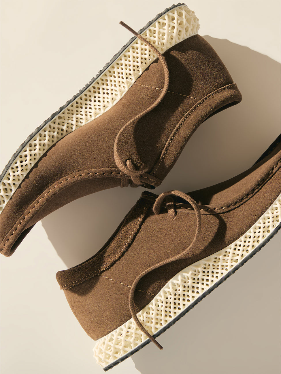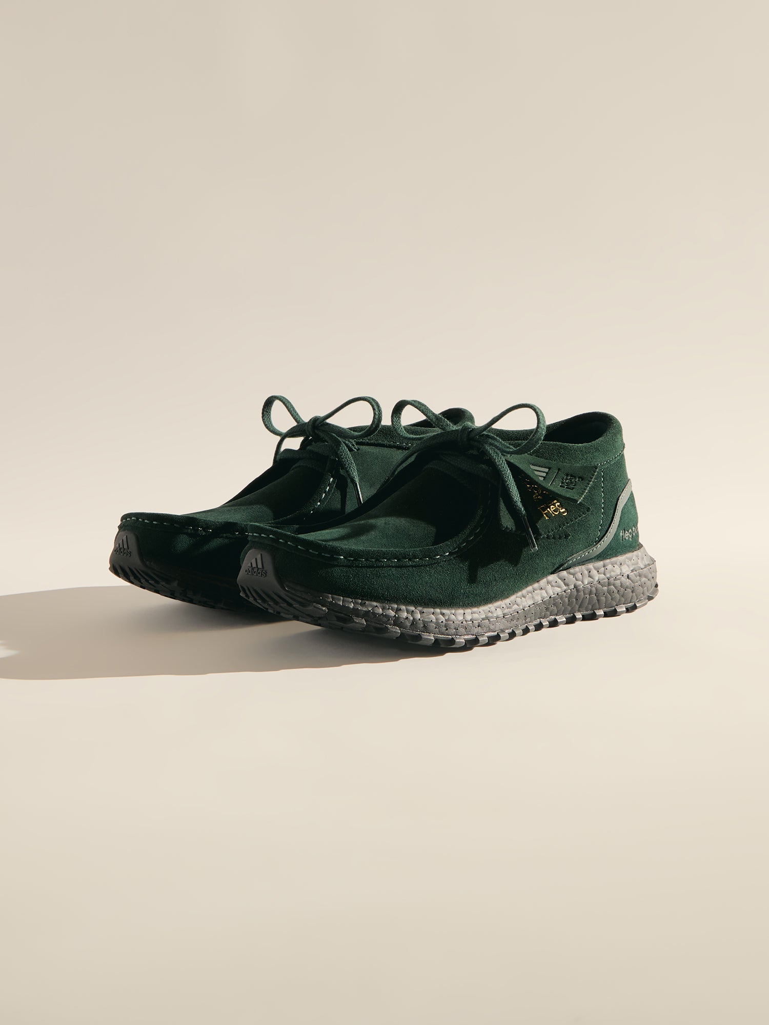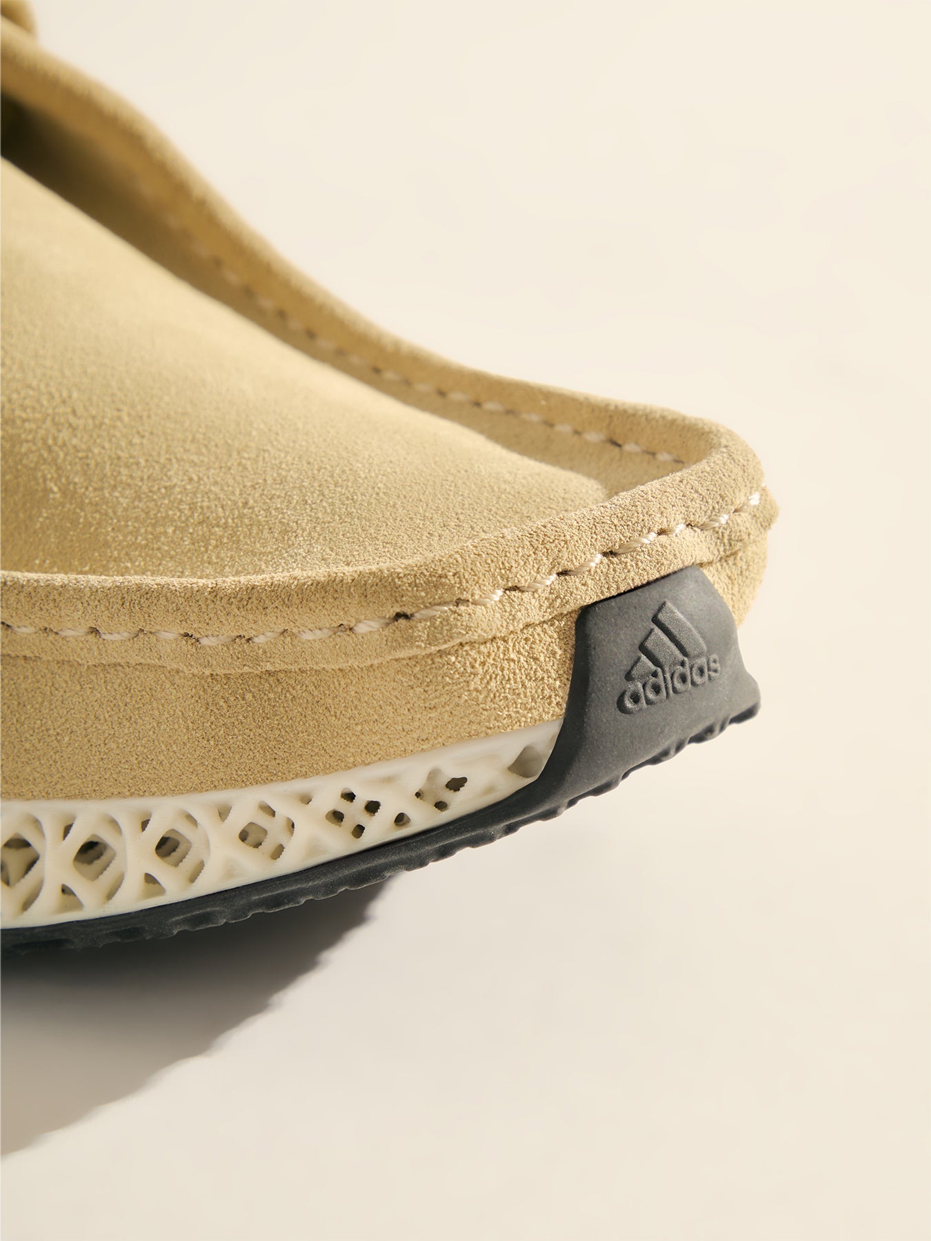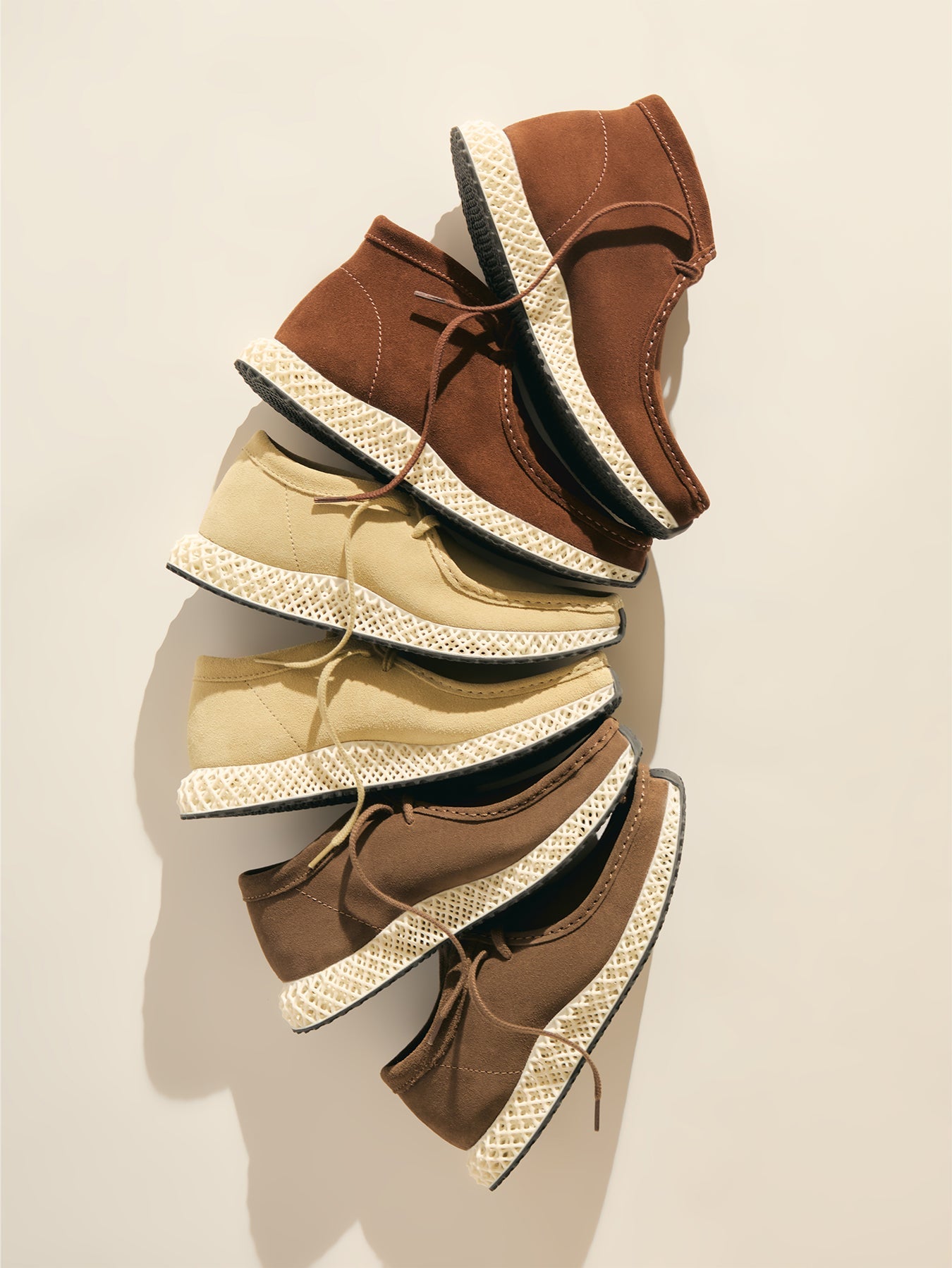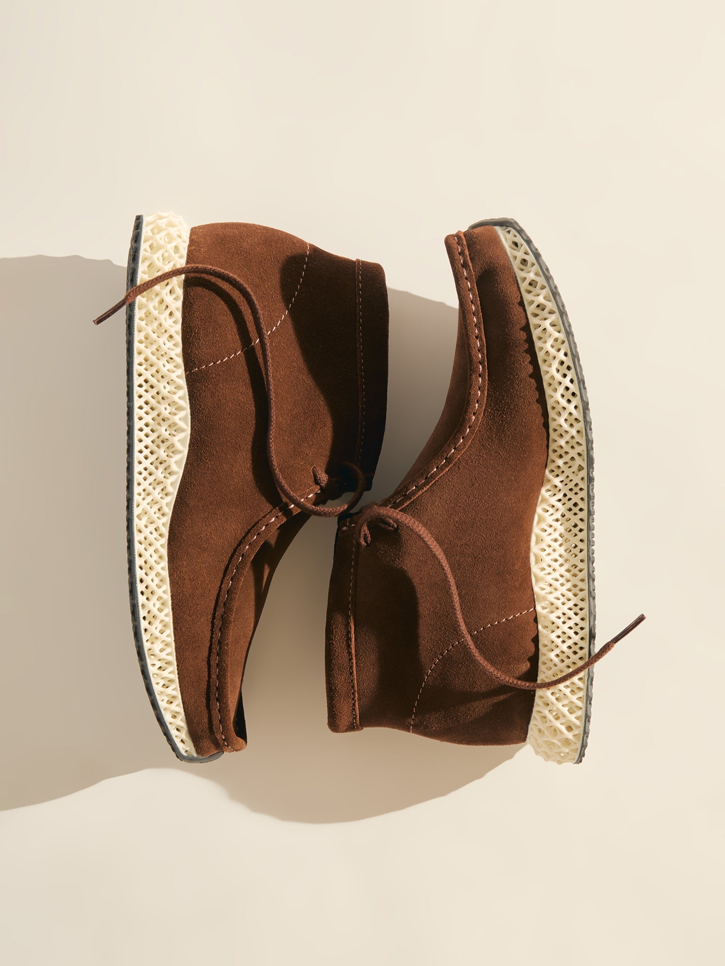 Previously having collaborated on the 8th St Samba, AS350, Gazelle, and BW Army—each of which featured an adidas upper silhouette on top of Clarks’ classic crepe outsole—Fieg alongside his 8th St partners wanted to push the boundaries of design and produce something never before-seen, taking the iconic Wallabee silhouette made of premium suede, featuring a moccasin-style toe, and pairing it with the optimized Ultraboost and 4D outsoles—the Ultraboost featuring a Stretchweb outsole for flexibility and Continental™ Rubber for traction, and the 4D known for its identifiable 3D-Printed midsole. Each is complete with optimized cushioning for long-lasting wear.