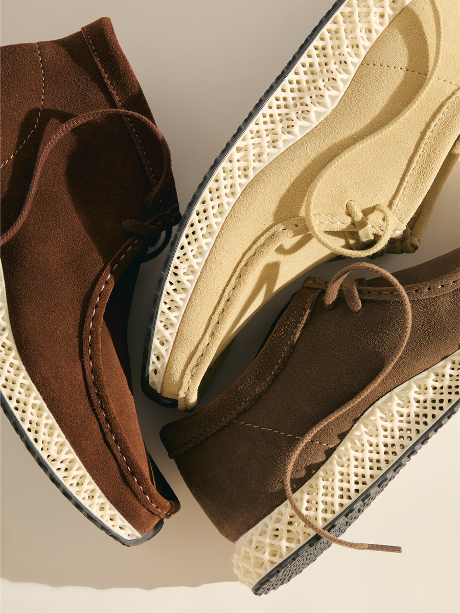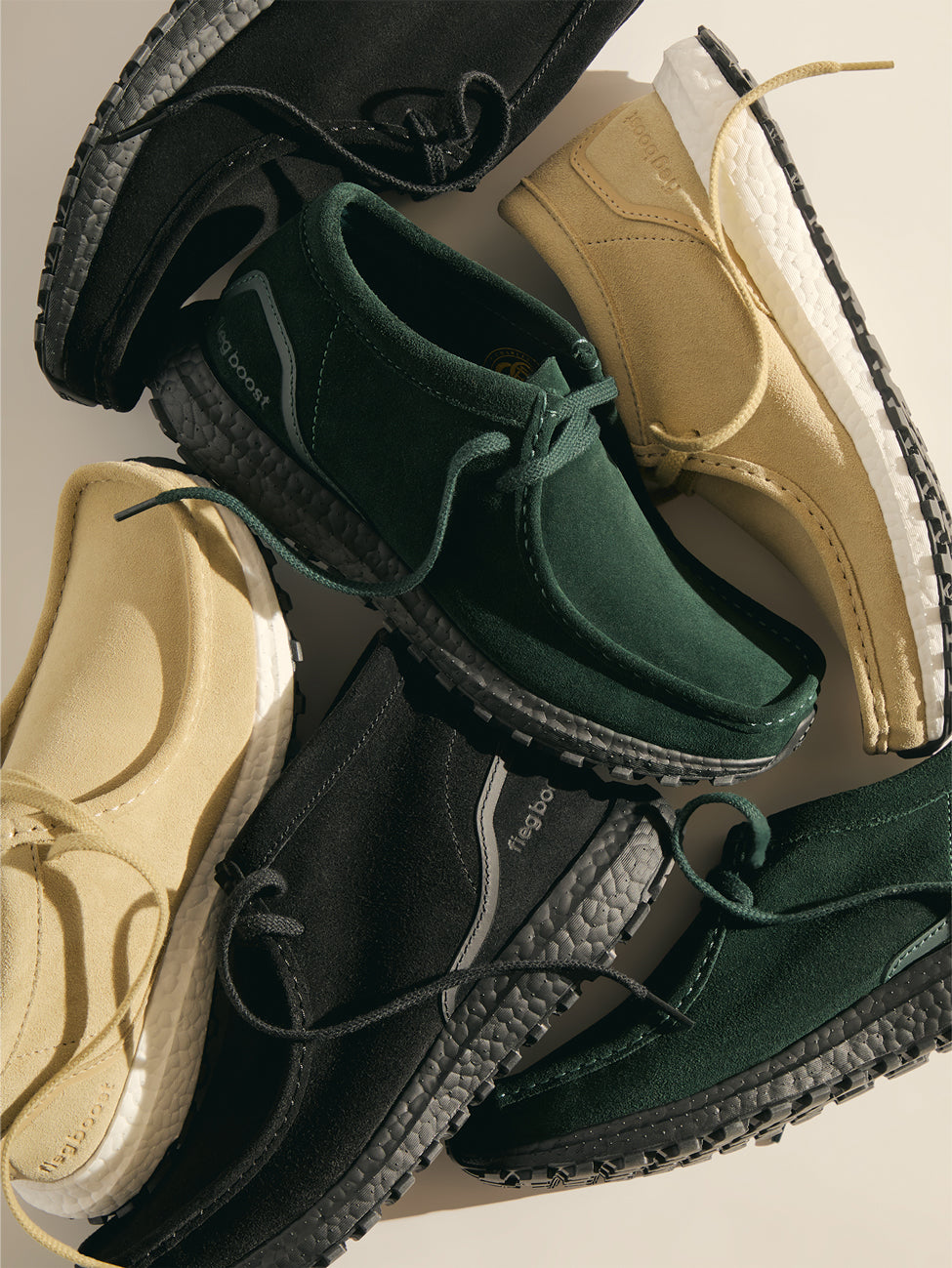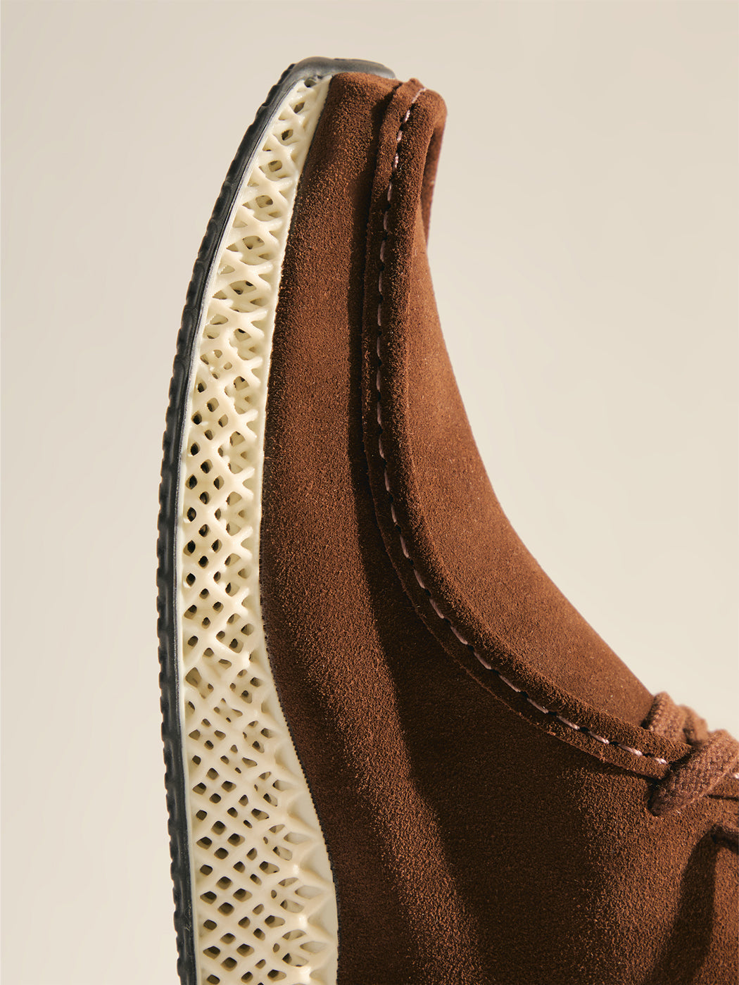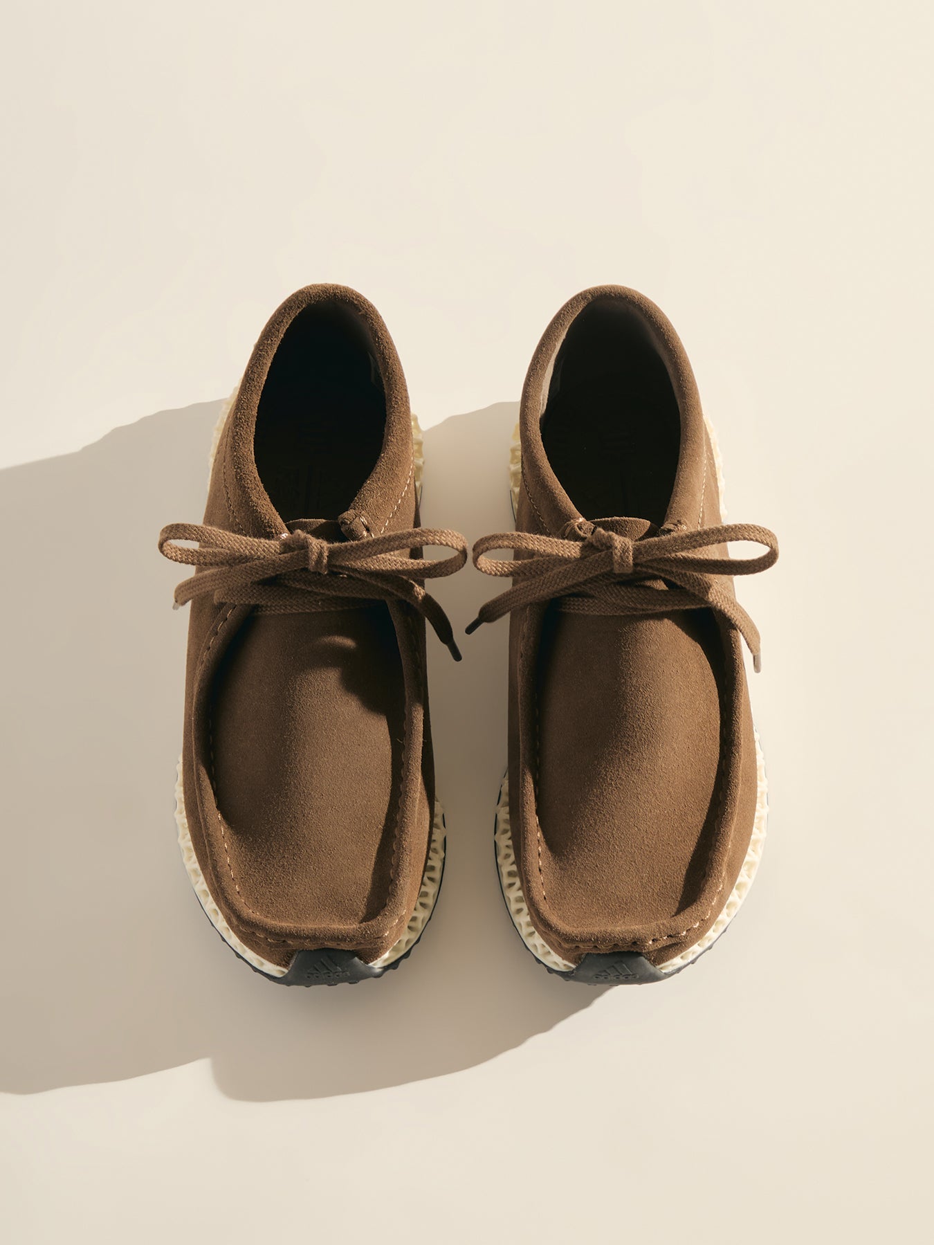 Previously having collaborated on the 8th St Samba, AS350, Gazelle, and BW Army—each of which featured an adidas upper silhouette on top of Clarks’ classic crepe outsole—Fieg alongside his 8th St partners wanted to push the boundaries of design and produce something never before-seen, taking the iconic Wallabee silhouette made of premium suede, featuring a moccasin-style toe, and pairing it with the optimized Ultraboost and 4D outsoles—the Ultraboost featuring a Stretchweb outsole for flexibility and Continental™ Rubber for traction, and the 4D known for its identifiable 3D-Printed midsole. Each is complete with optimized cushioning for long-lasting wear.