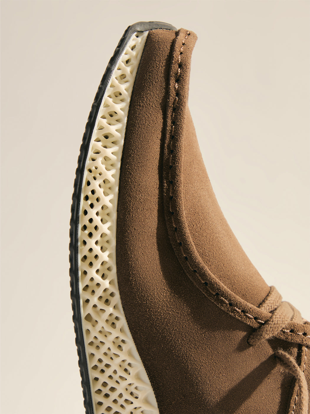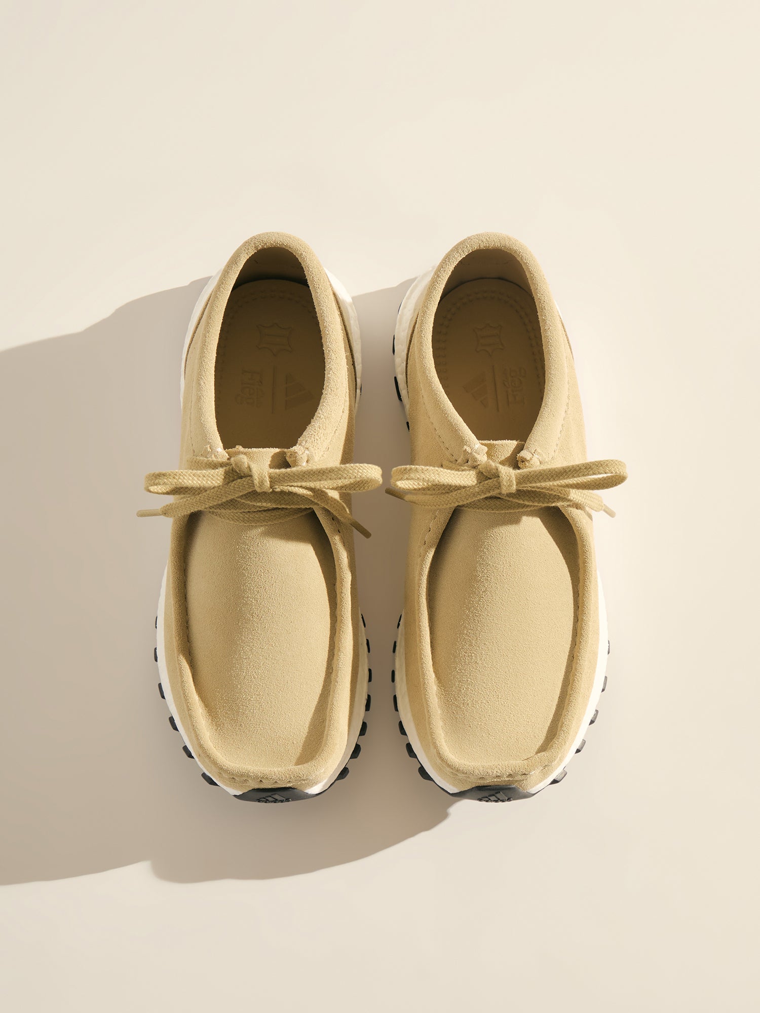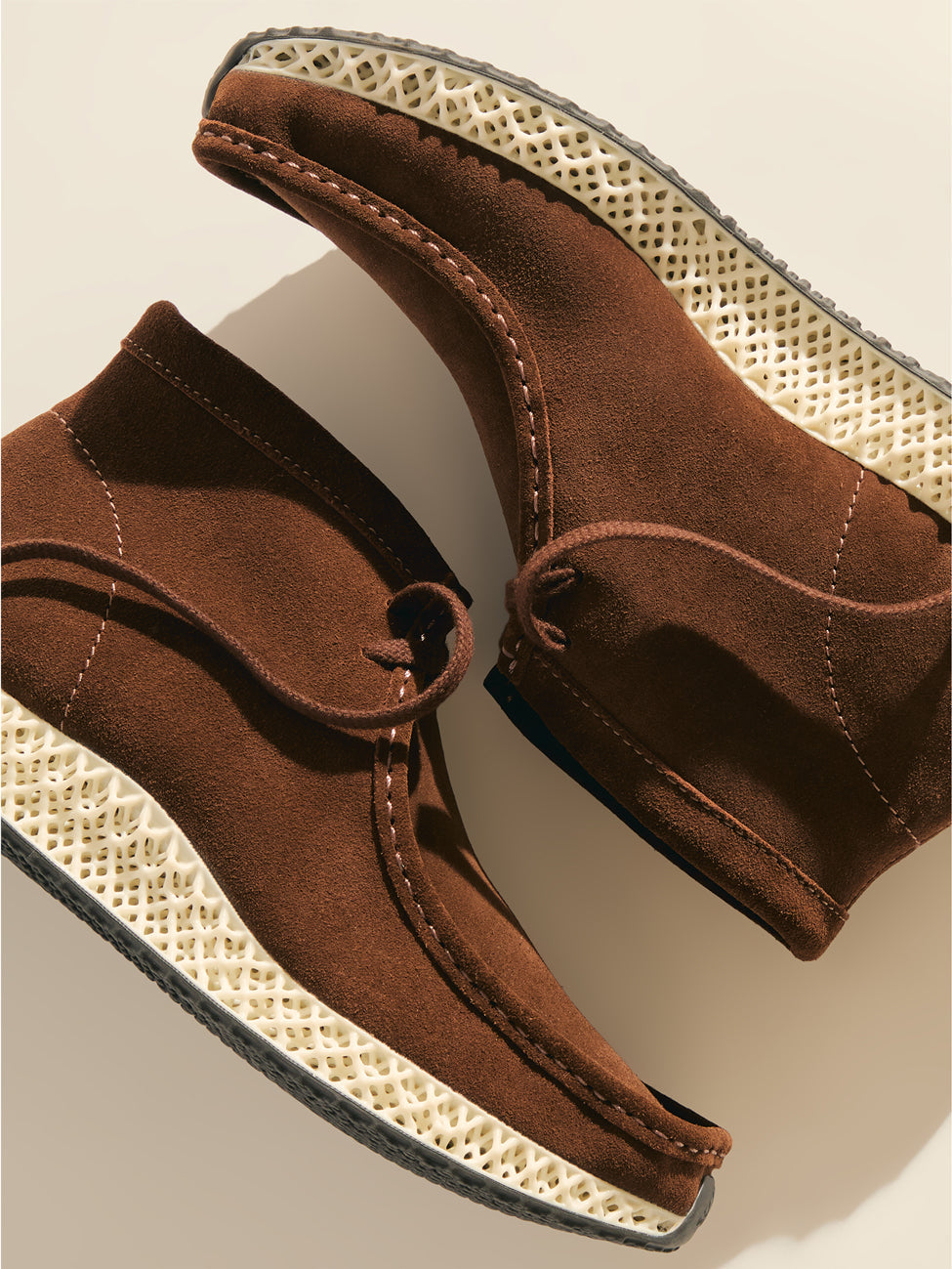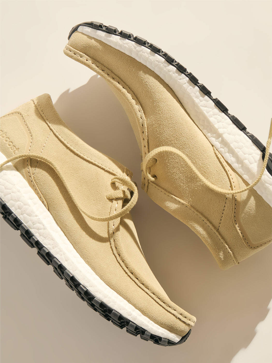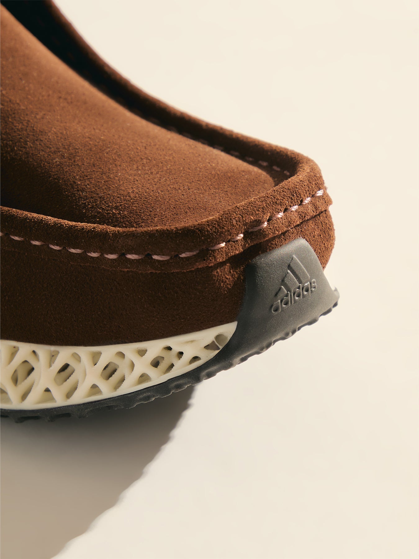 Previously having collaborated on the 8th St Samba, AS350, Gazelle, and BW Army—each of which featured an adidas upper silhouette on top of Clarks’ classic crepe outsole—Fieg alongside his 8th St partners wanted to push the boundaries of design and produce something never before-seen, taking the iconic Wallabee silhouette made of premium suede, featuring a moccasin-style toe, and pairing it with the optimized Ultraboost and 4D outsoles—the Ultraboost featuring a Stretchweb outsole for flexibility and Continental™ Rubber for traction, and the 4D known for its identifiable 3D-Printed midsole. Each is complete with optimized cushioning for long-lasting wear.