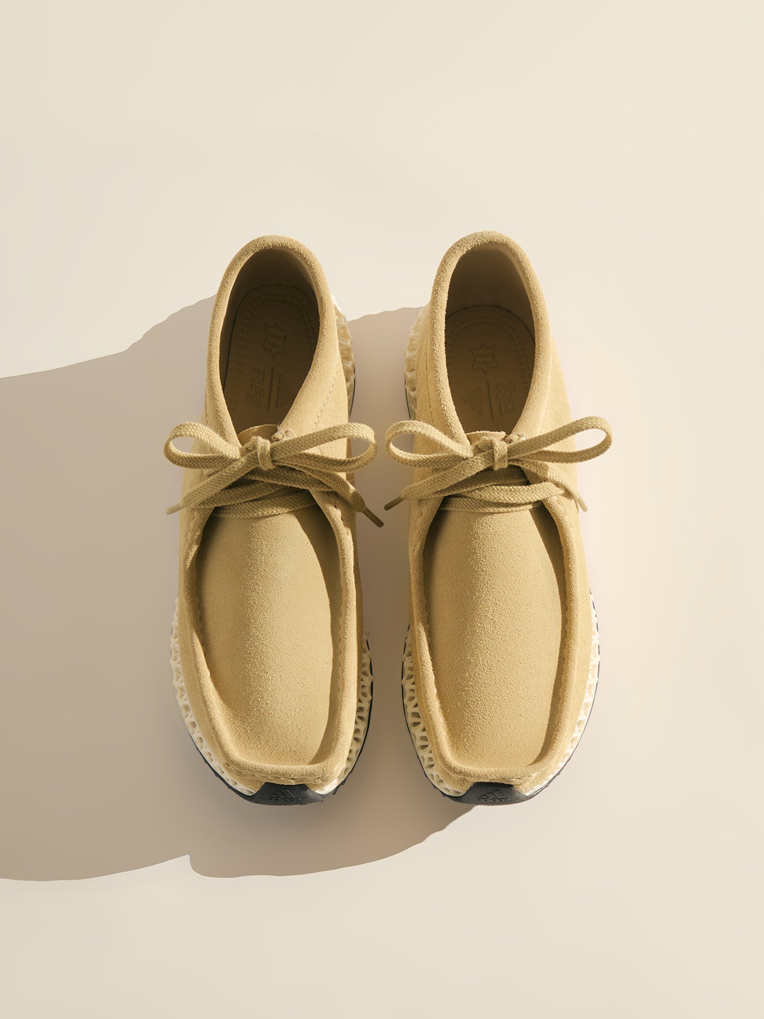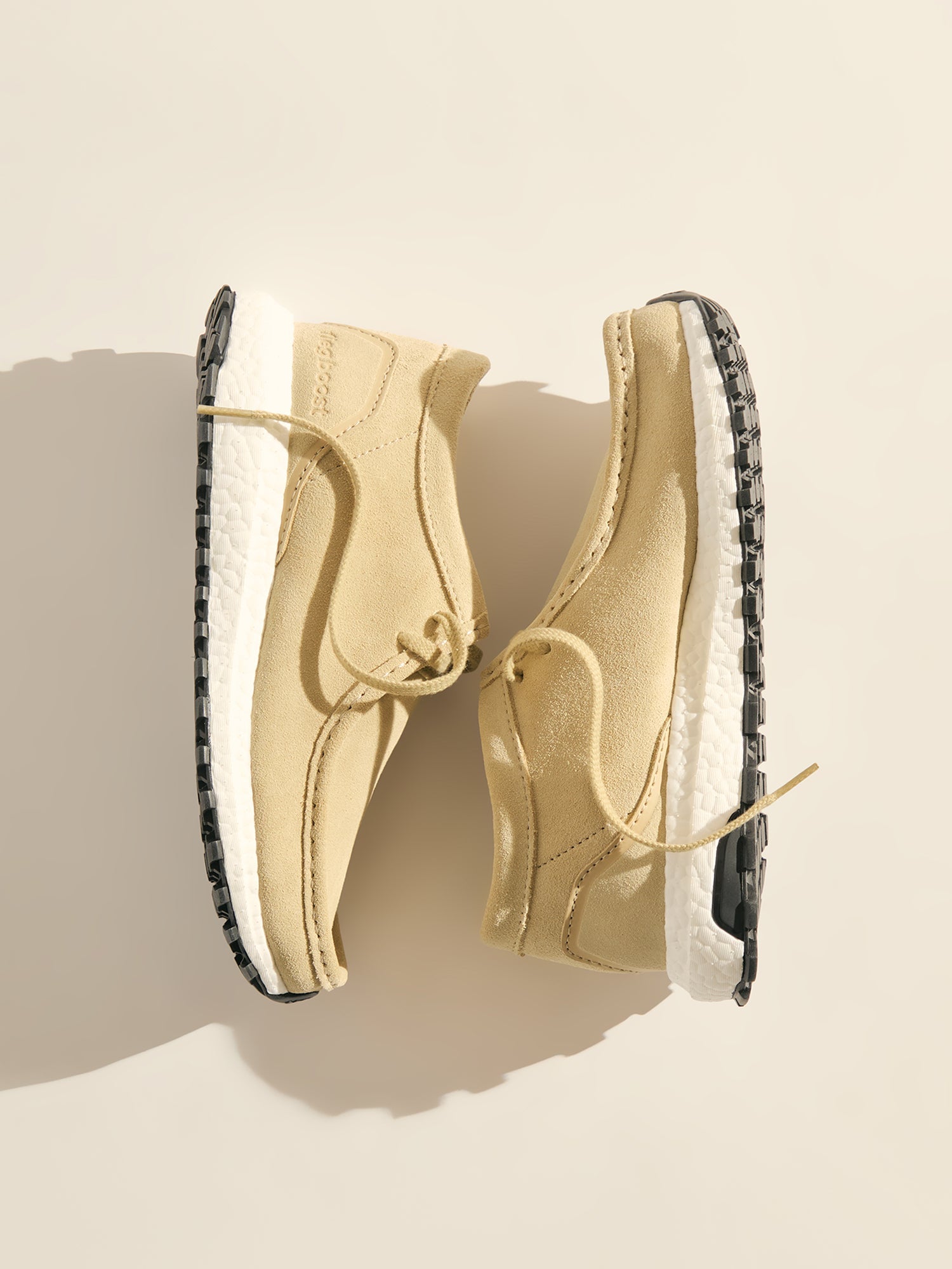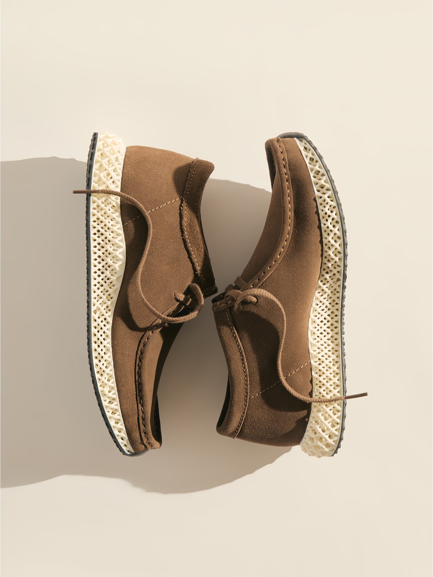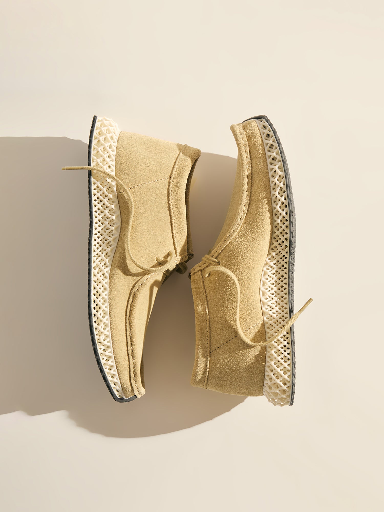 Previously having collaborated on the 8th St Samba, AS350, Gazelle, and BW Army—each of which featured an adidas upper silhouette on top of Clarks’ classic crepe outsole—Fieg alongside his 8th St partners wanted to push the boundaries of design and produce something never before-seen, taking the iconic Wallabee silhouette made of premium suede, featuring a moccasin-style toe, and pairing it with the optimized Ultraboost and 4D outsoles—the Ultraboost featuring a Stretchweb outsole for flexibility and Continental™ Rubber for traction, and the 4D known for its identifiable 3D-Printed midsole. Each is complete with optimized cushioning for long-lasting wear.