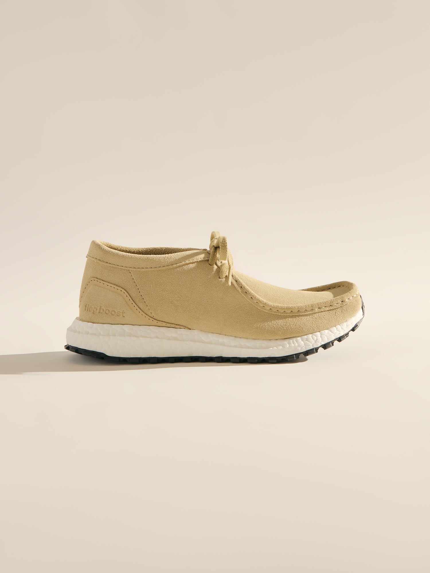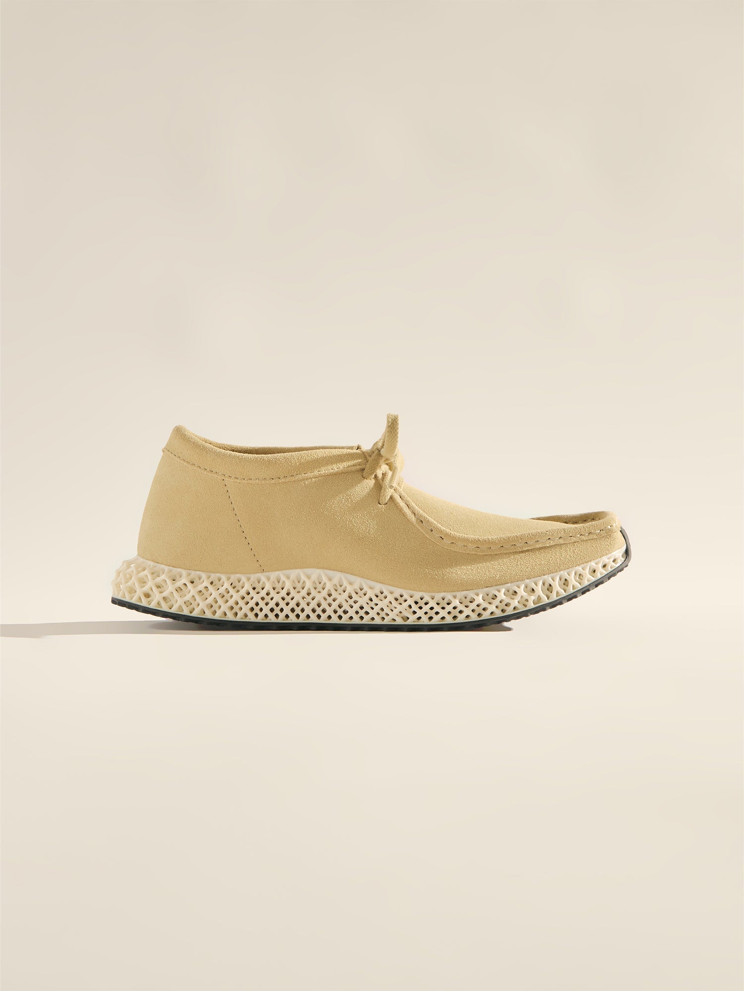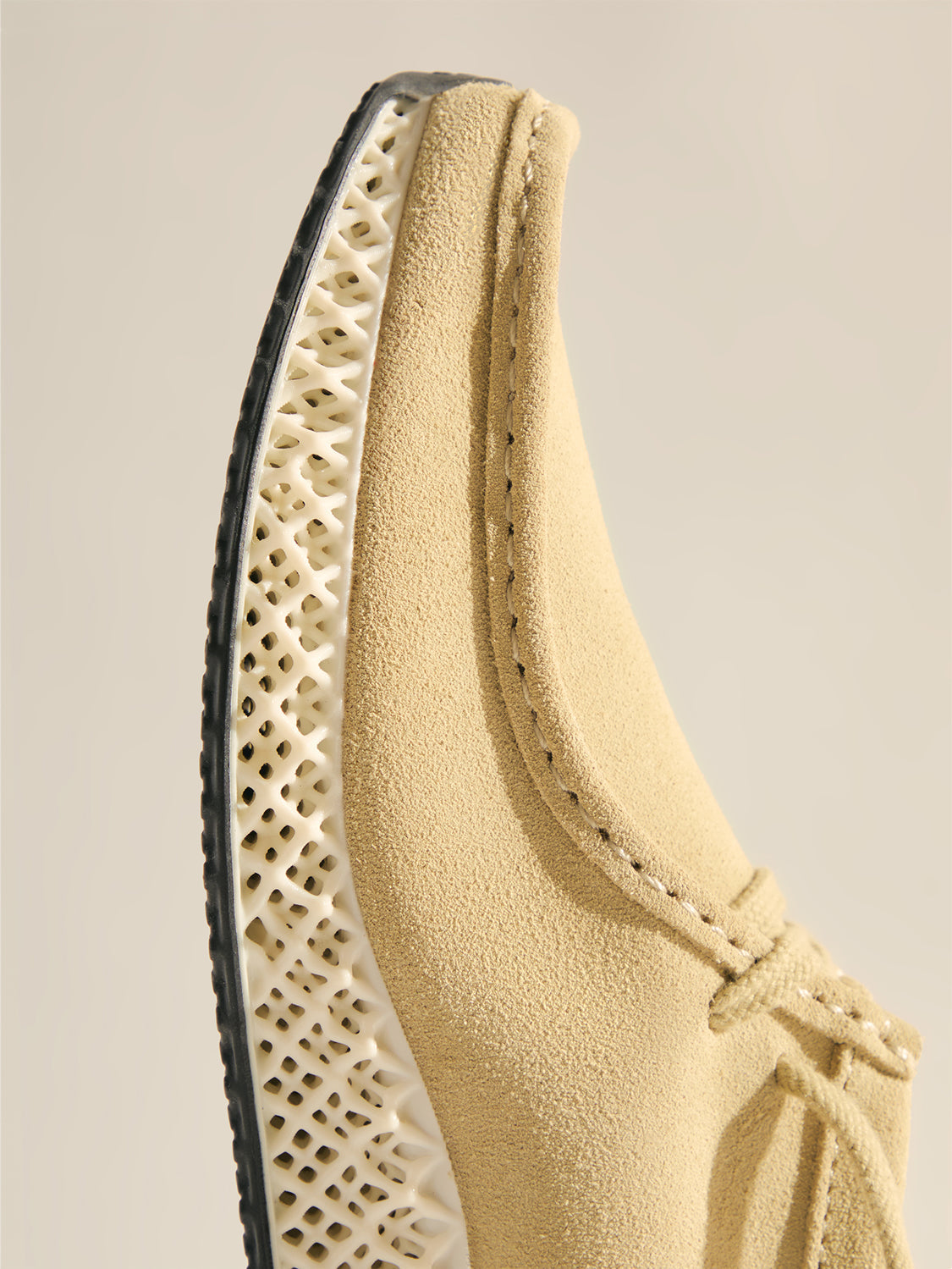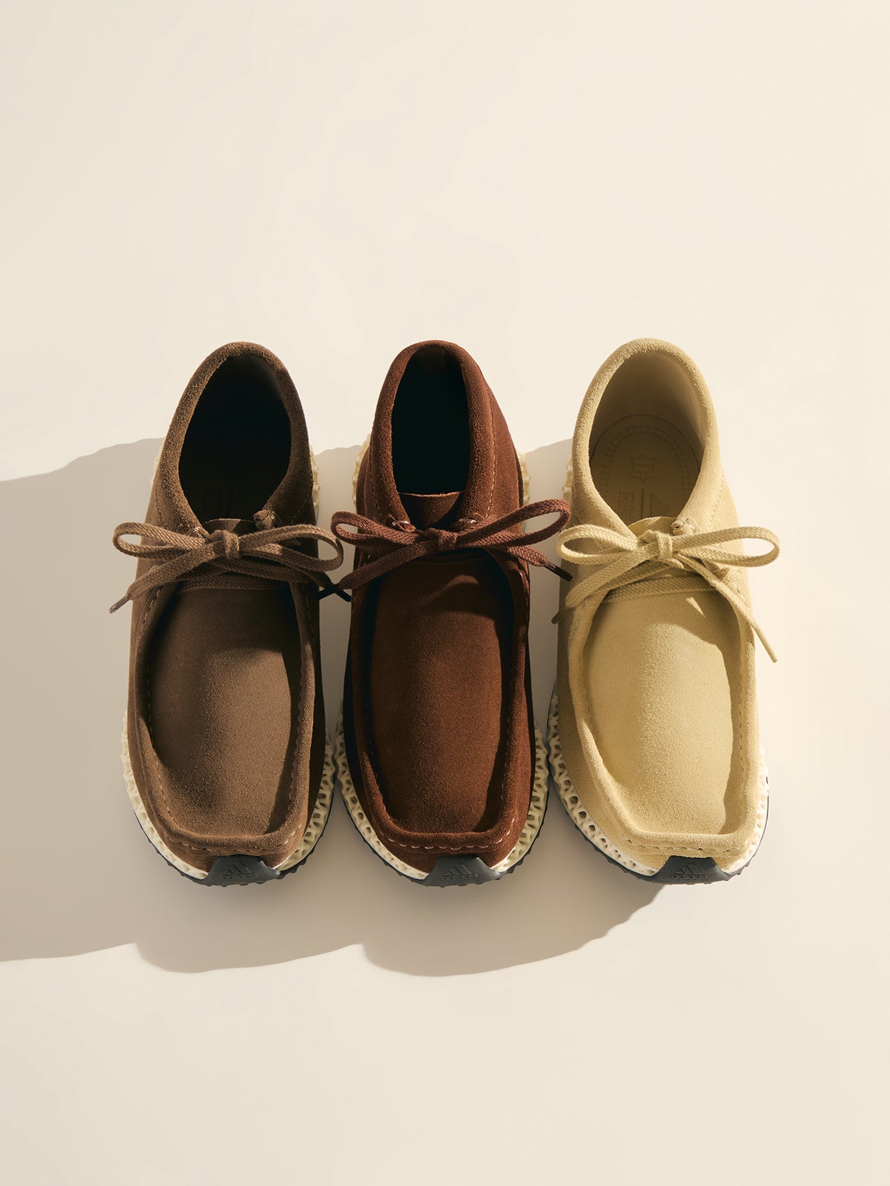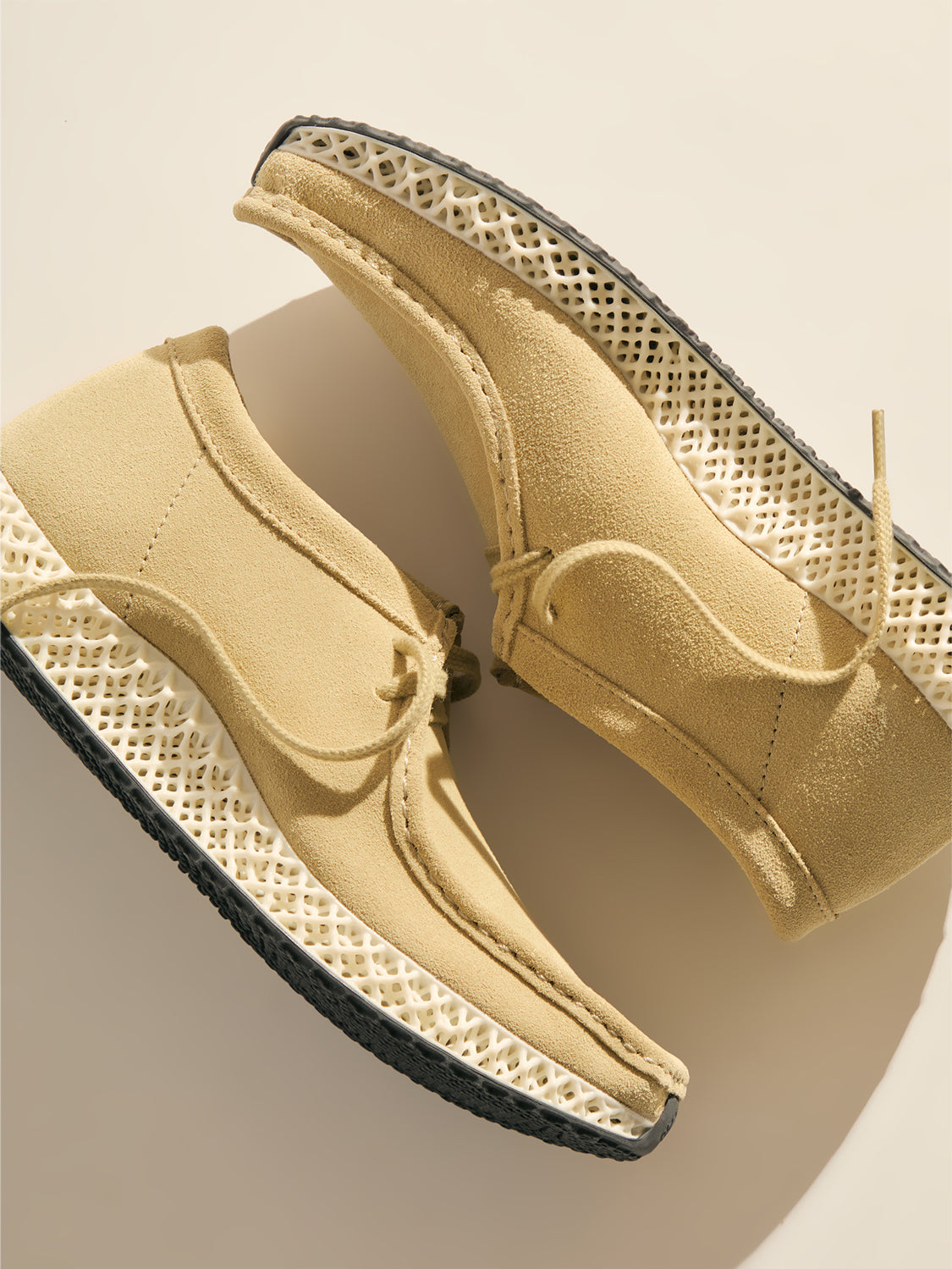 Previously having collaborated on the 8th St Samba, AS350, Gazelle, and BW Army—each of which featured an adidas upper silhouette on top of Clarks’ classic crepe outsole—Fieg alongside his 8th St partners wanted to push the boundaries of design and produce something never before-seen, taking the iconic Wallabee silhouette made of premium suede, featuring a moccasin-style toe, and pairing it with the optimized Ultraboost and 4D outsoles—the Ultraboost featuring a Stretchweb outsole for flexibility and Continental™ Rubber for traction, and the 4D known for its identifiable 3D-Printed midsole. Each is complete with optimized cushioning for long-lasting wear.