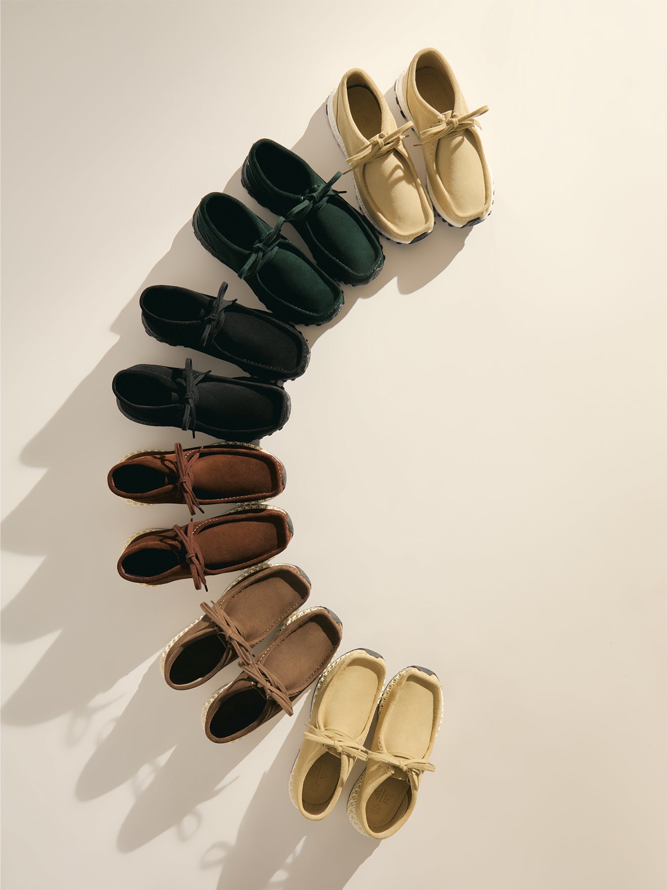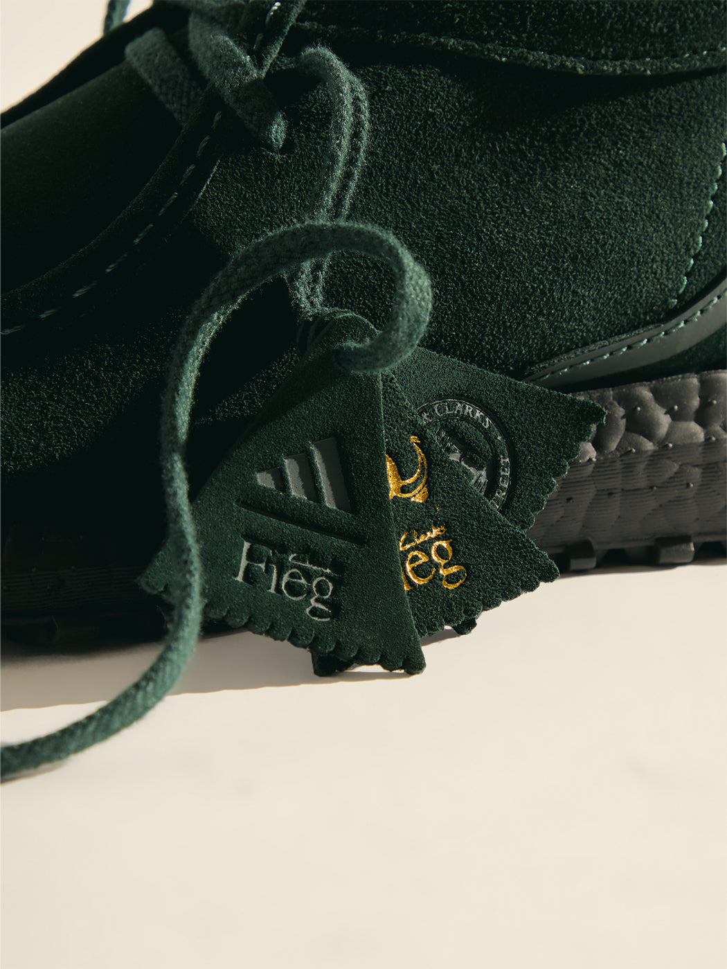 Made in the staple hues Maple, Dark Grey Suede, Scarab, and Black, there are two Wallabee Mid silhouettes and four Wallabee Low silhouettes. The Wallabee Ultraboost styles feature Fiegboost branding on the heel overlay, and all six come with exclusive tri-branded fobs dedicated to 8th St, adidas, and Clarks Originals.