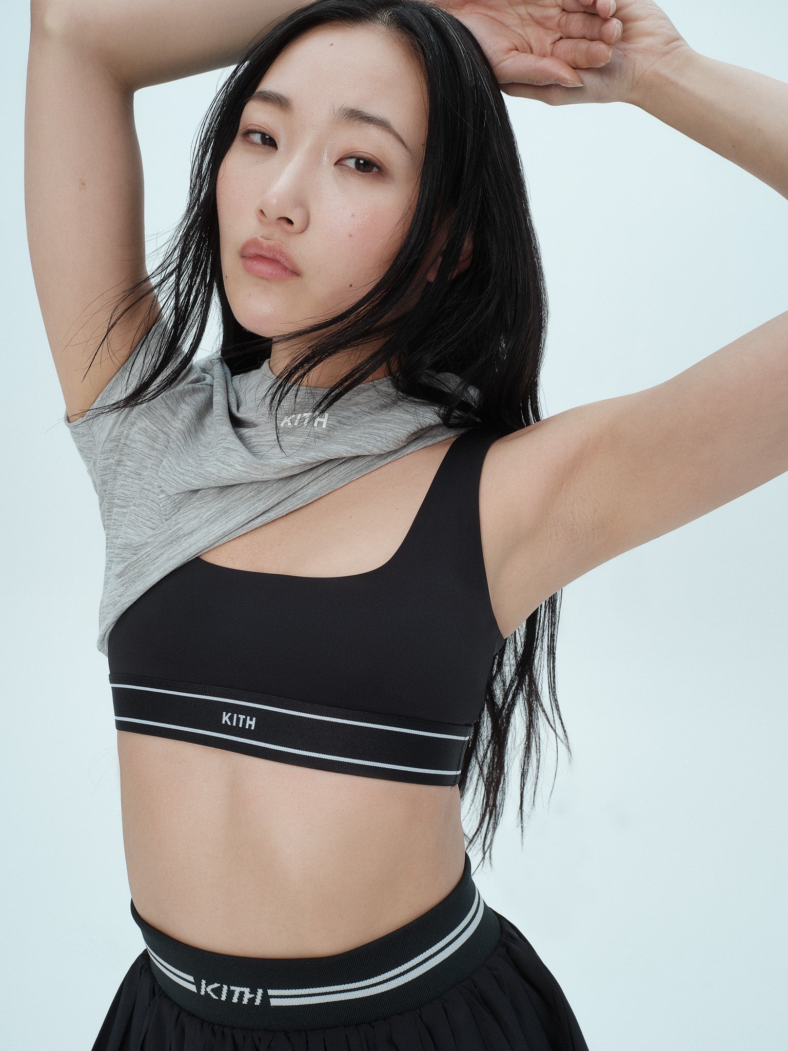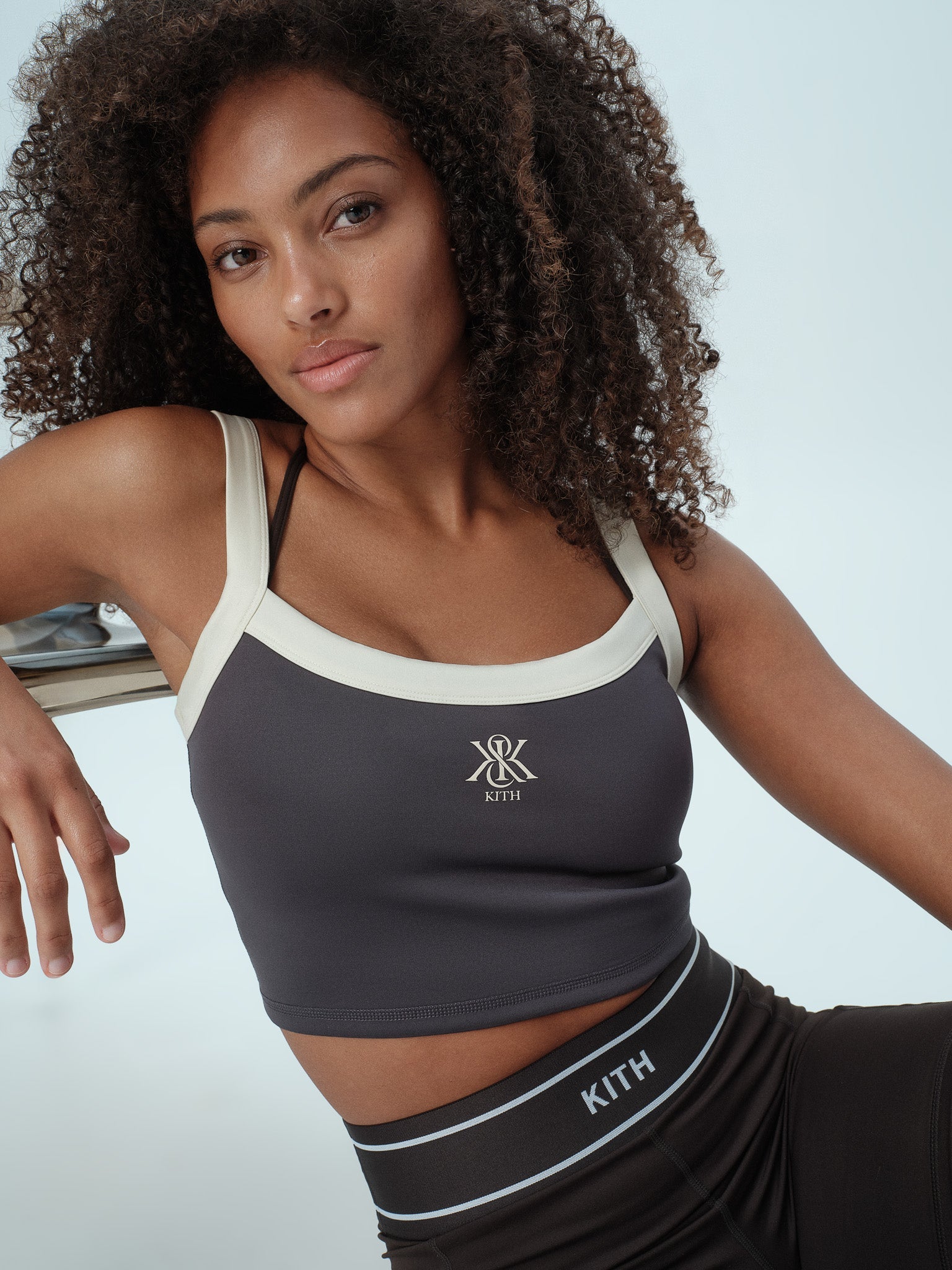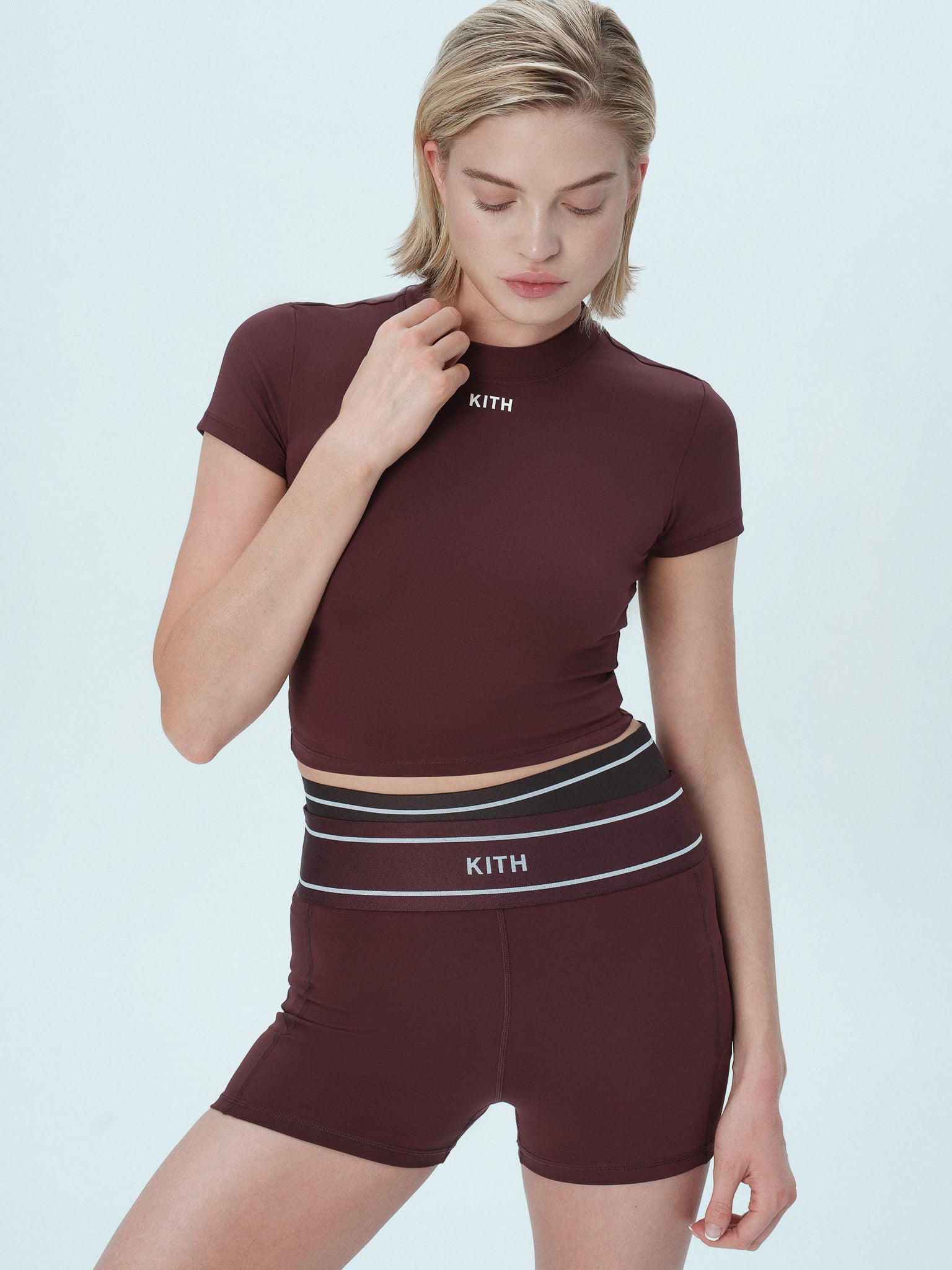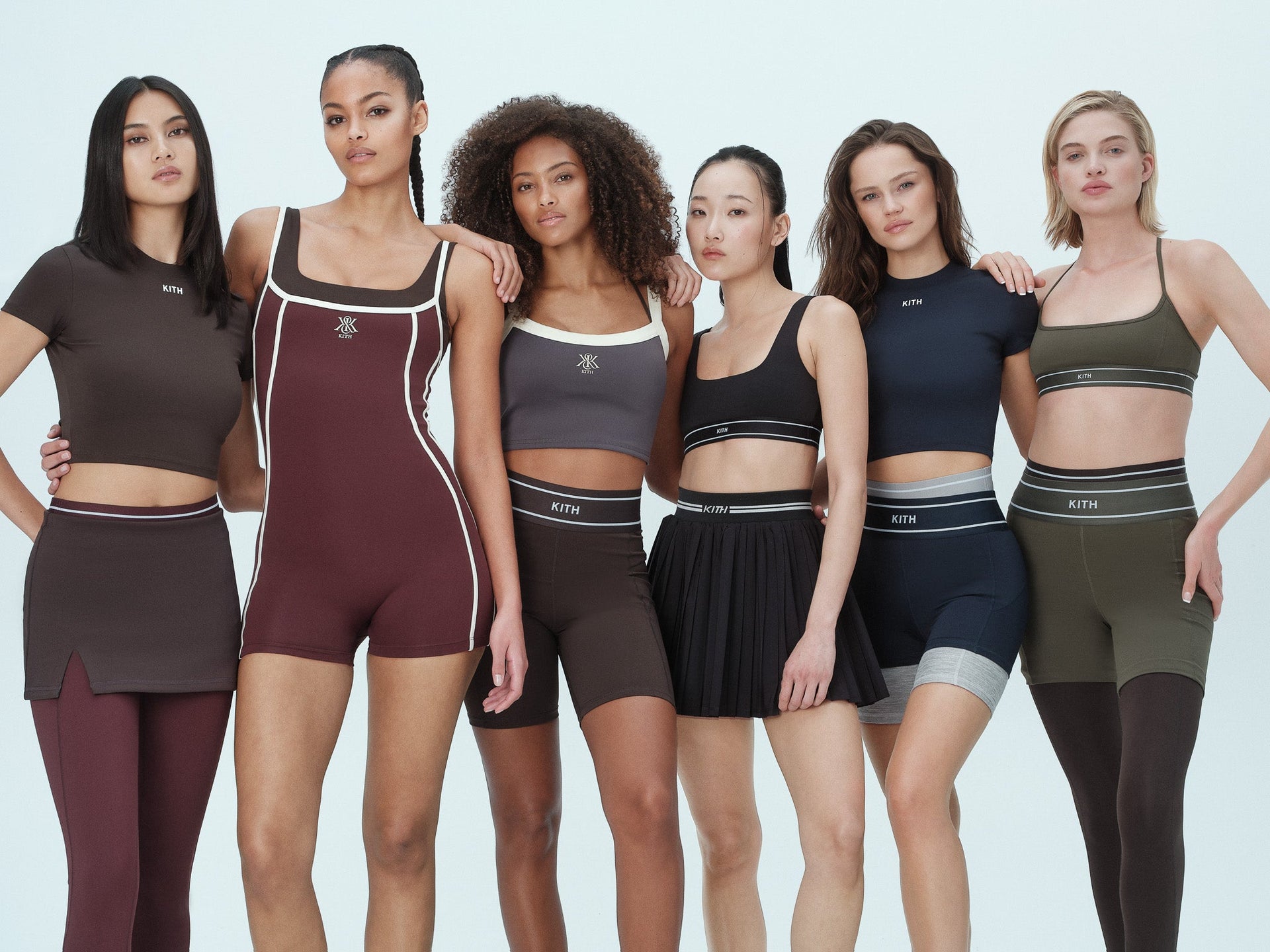 Blending harmoniously form and function, materials from this collection offer a sleek, flattering finish in an array of compression options, including both simple lifestyle fabrications and high-impact holds. Explore signature Kith wrinkle nylon utilized on Track Jackets, fine-brushed and peached interlock suitable for workouts of all intensities as well as lifestyle wear, implemented on Sports Bras, Leggings, Biker Shorts, and Rompers, and a soft, compact technical knit displayed on the Ari Active Skort and Active Peyton II Tank.