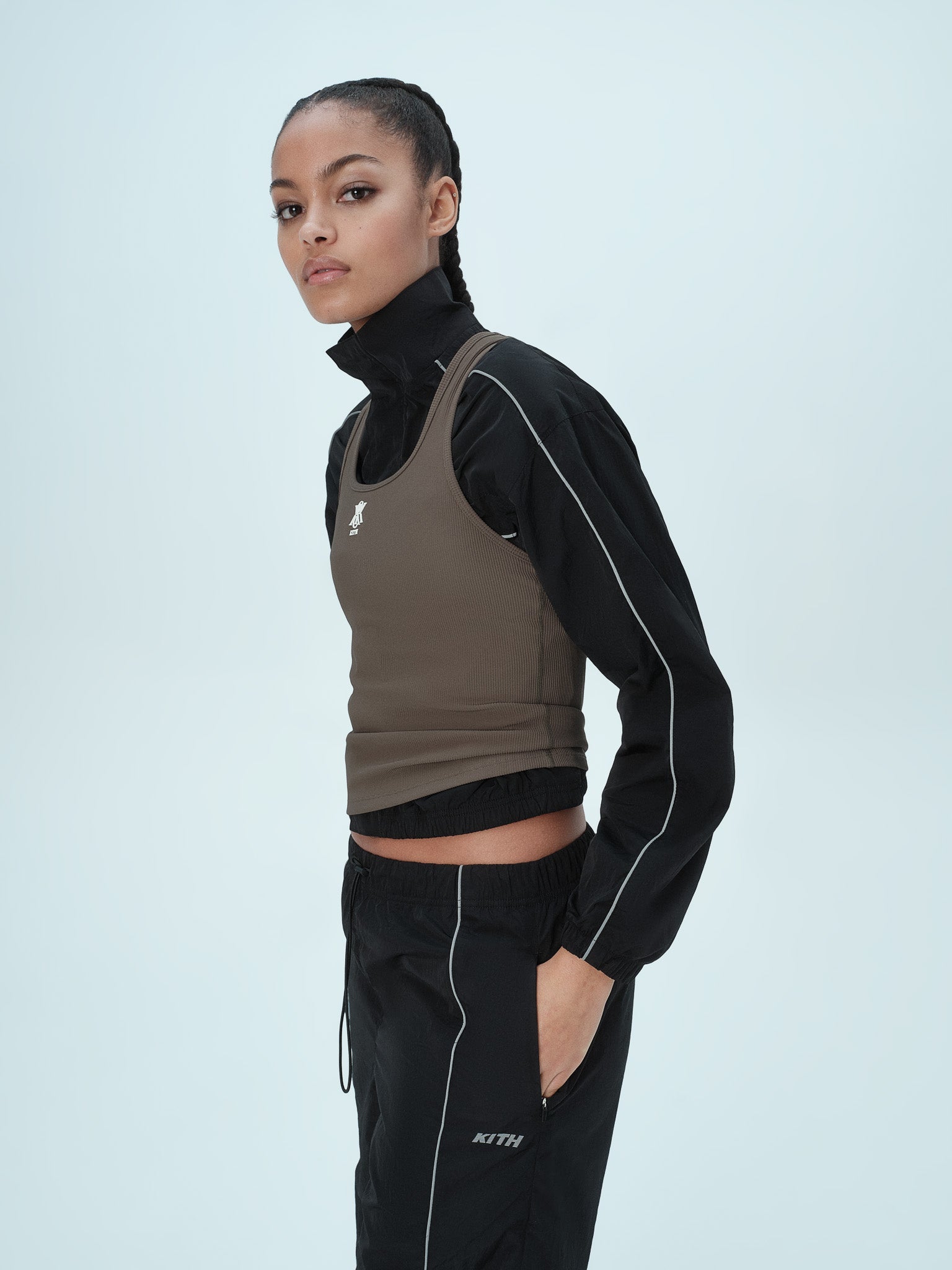 The Kith Women Active program has been a hallmark of the brand for many years, presenting staples such as the Nadia Low Impact Bra, the Lowen Track Jacket, and the Avery Tights seen in different iterations each season. As the Active initiative expands, Kith Women introduces a cohesive Core assortment available year-round, integral to any wardrobe with neutral colorways. This collection is designed to be worn as matching sets or individual pieces to mix-and-match, highlighted by outerwear, tops, bottoms, and rompers, versatile as it is intended to be worn everywhere from coffee meetings to dinners with friends or the Pilates studio.