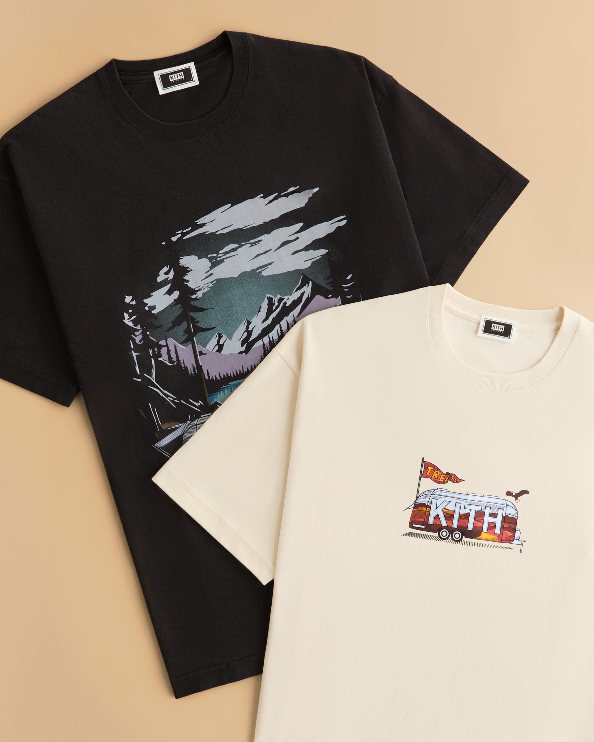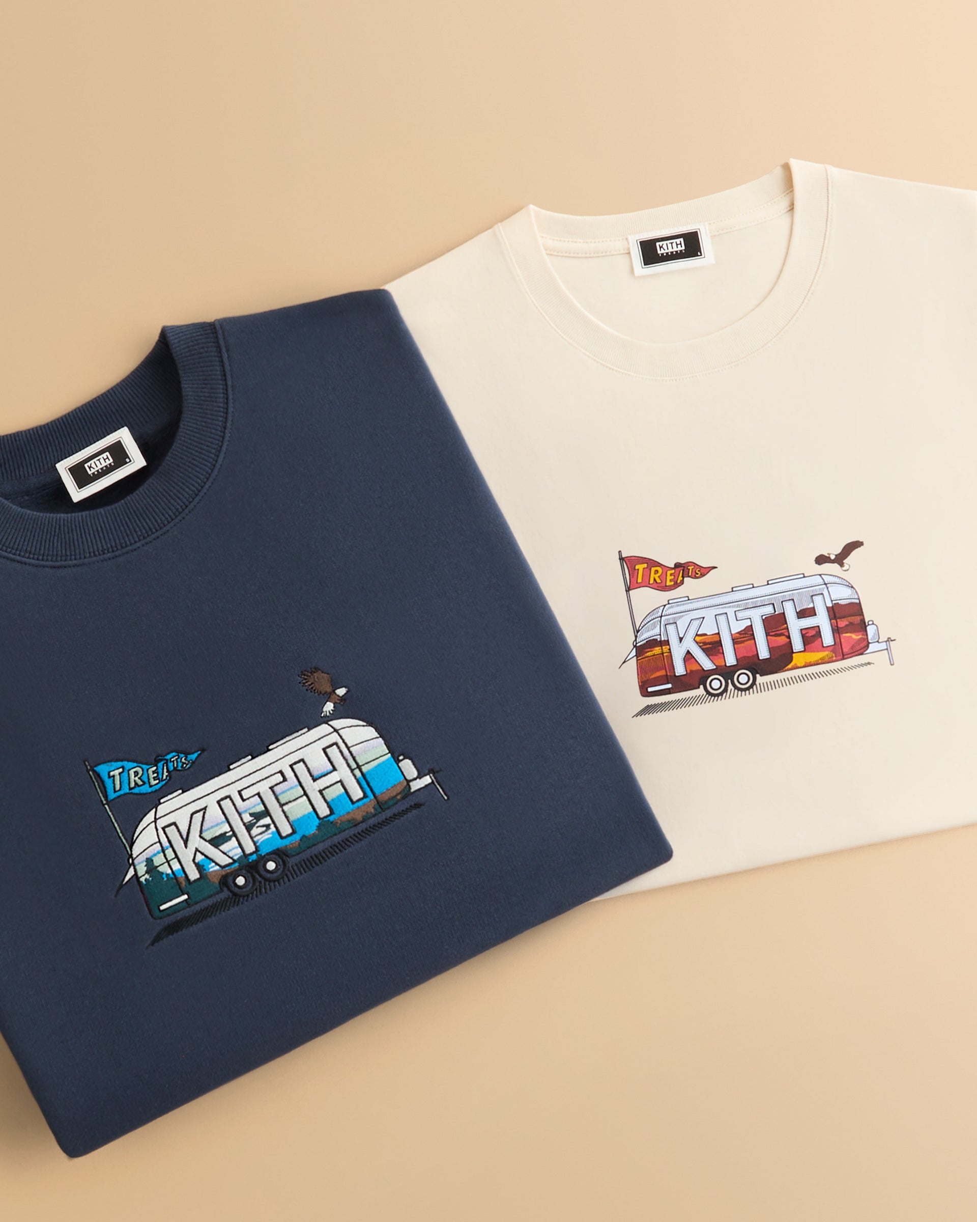 Kith Treats welcomes fall weather with its latest collection, Treats Campground—a three-piece capsule celebrating the indulgence of the great outdoors. This limited edition capsule sees Kith’s signature Nelson crewneck as well as two vintage tees adorned with scenic campground illustrations and classic wordmark camper graphics.