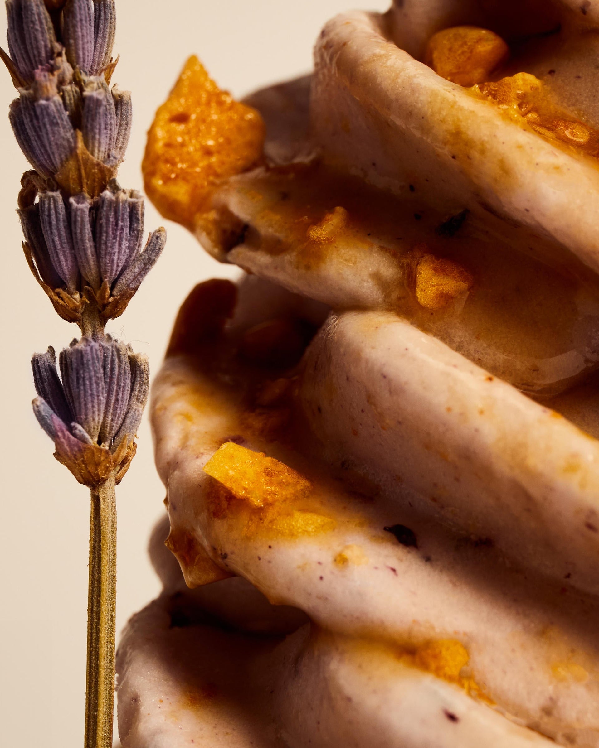 Alongside the release of Treats Honey II, Kith Treats has crafted a limited-time offering inspired by the capsule’s illustrative graphics. This fragrant, springtime dessert is infused with flavors of vanilla, lavender, blueberry & honey, creating a rich yet refreshing taste profile.