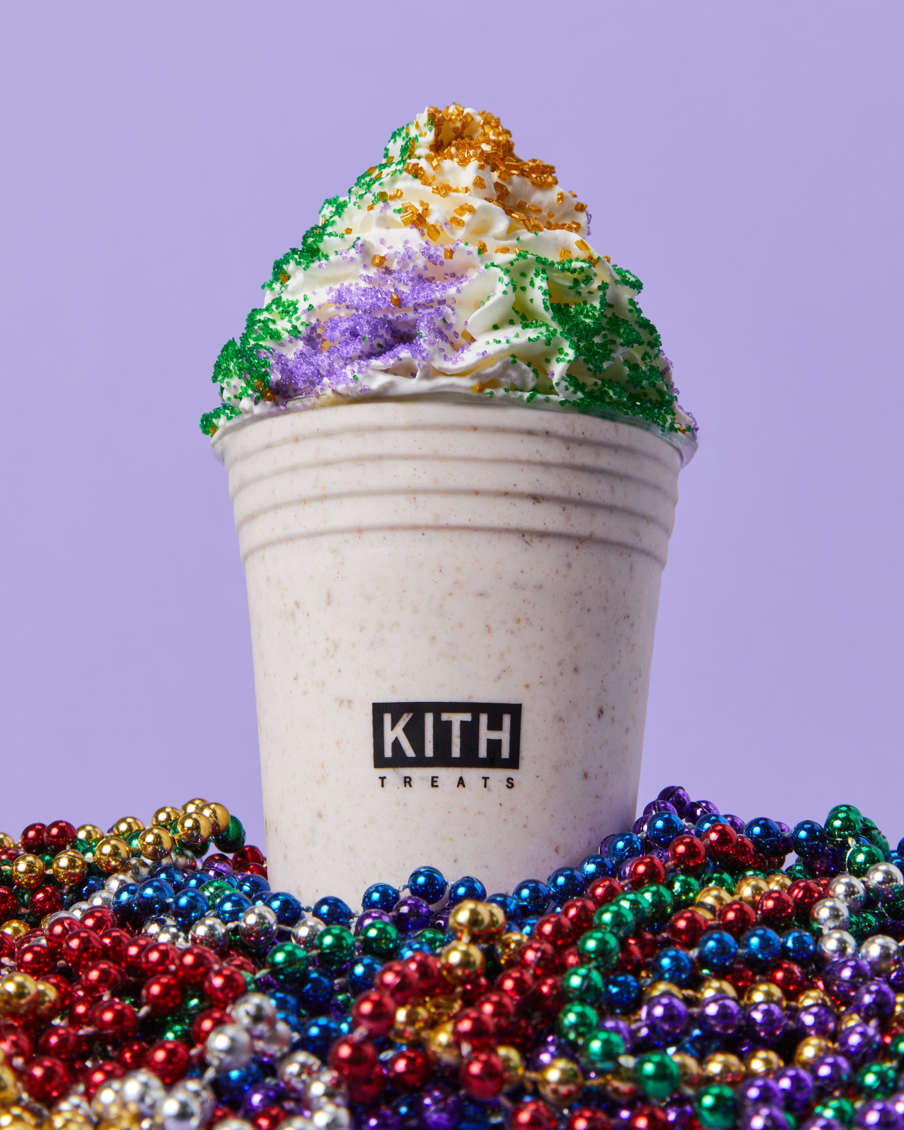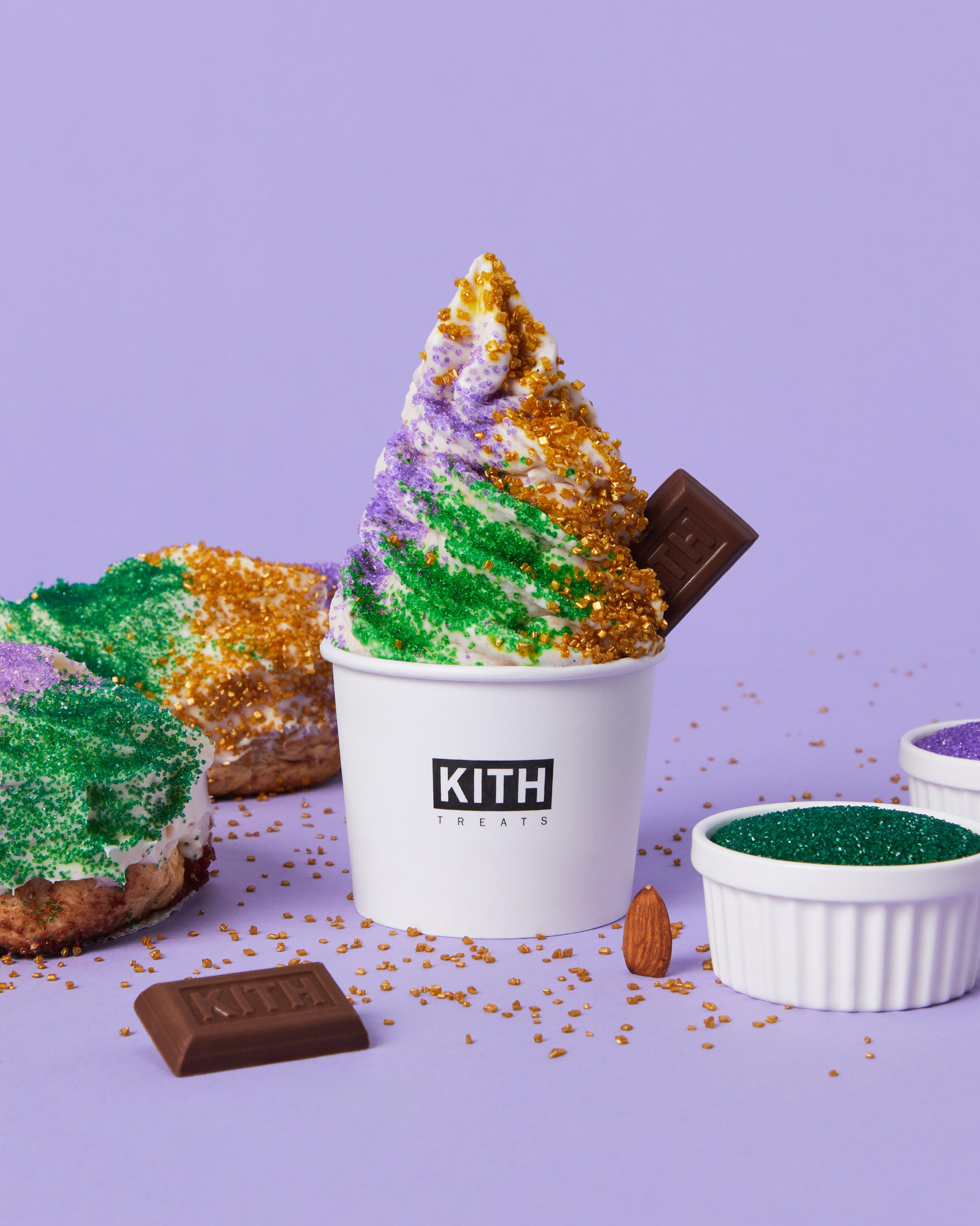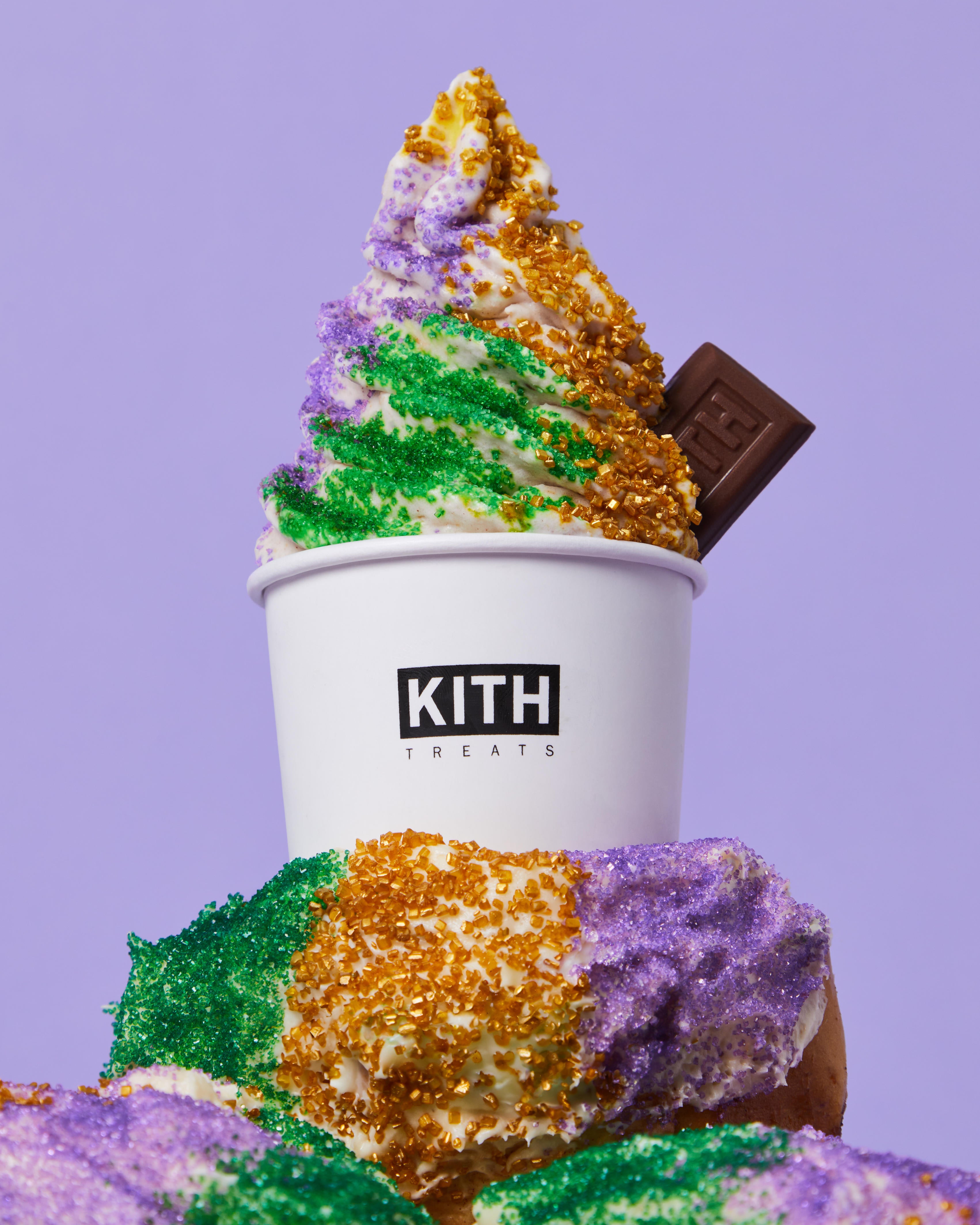 Alongside the collection, Kith Treats will offer a festive special, The Carnival. The limited-time only special is inspired by a traditional New Orleans Mardi Gras delicacy, The King’s Cake—a sweet, circular pastry made from cinnamon-swirled brioche dough decorated with colored icing & sugar in the traditional Mardi Gras colors of purple, green, and gold.