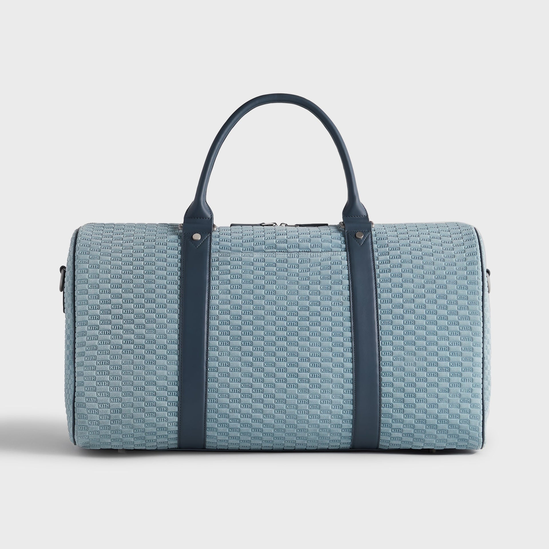 The Kith Monogram Suede Duffle Bag is crafted of all-over Kith Monogram debossed cowhide suede, featuring a cotton canvas lining, structured top handles, a removable and adjustable crossbody strap, metal hardware, and interior pockets. It is complete with a two-way zip-top closure.All-over Kith Monogram debossed cowhide suede