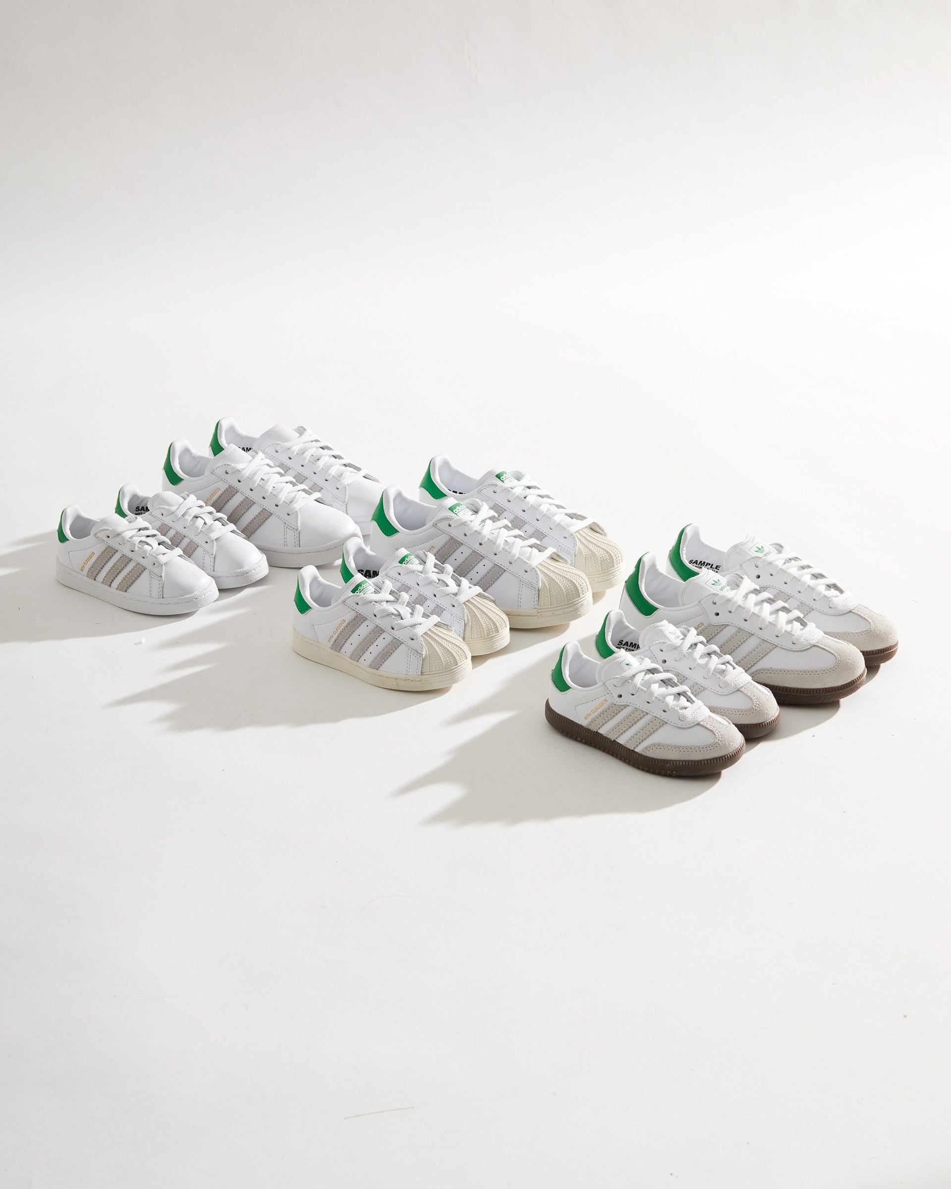 The Campus 80s, Samba, and Superstar from Kith Kids Classics return in an updated Fairway Green colorway, designed for durability, comfort, and style. Available in pre-school and toddler sizing.