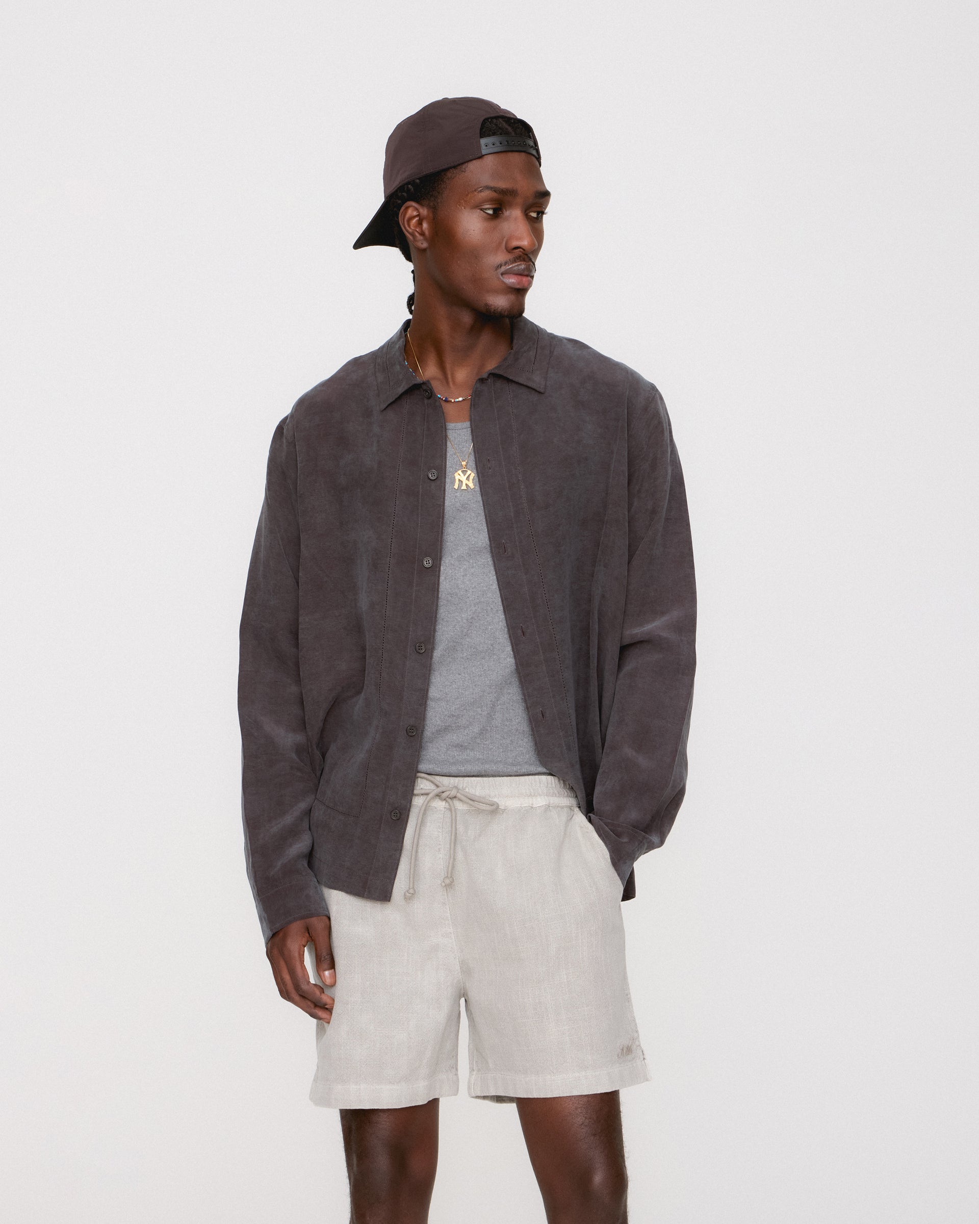 Made from a premium linen blend, explore Cupro silhouettes, ideal for lightweight summertime dressing. Shop styles like the Thompson Crossover Shirt, the Adonis Camp Collar Shirt, and the accompanying Barrow Pant and Kylan Pleated Short, designed for wear as a set or separate.