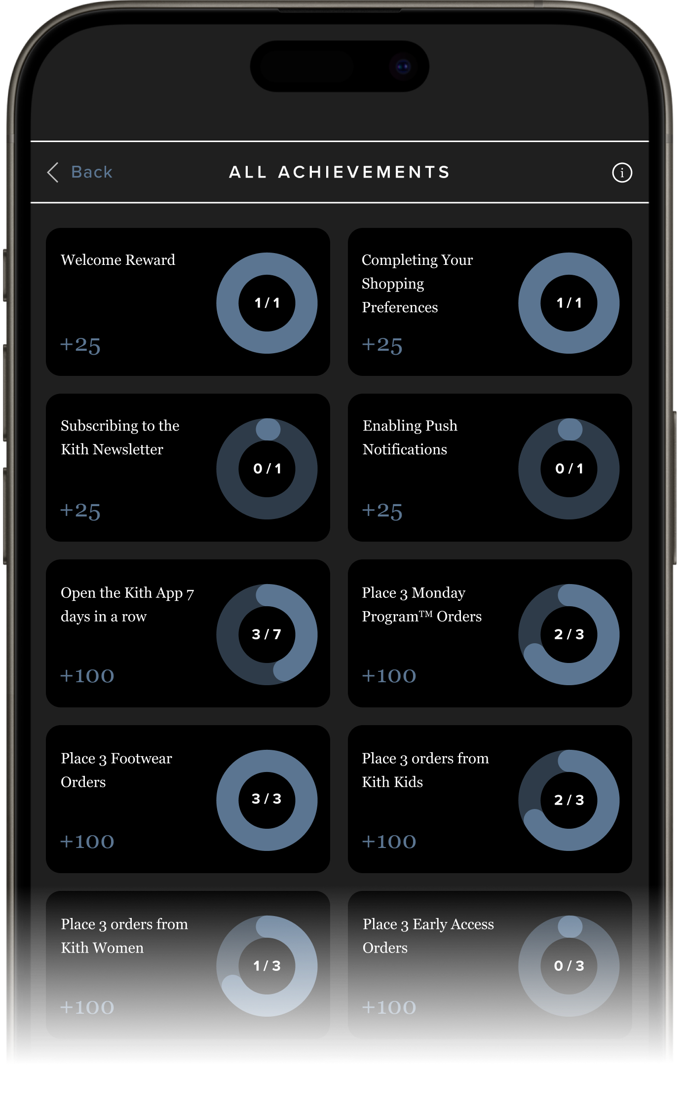 Earn points on activities online, in-store, and on the Kith App.